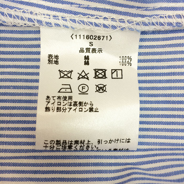 | 商品説明 | 【管理番号】007462 【ブランド名】 グレースコンチネンタル GRACE CONTINENTAL 【アイテム】 パールビジュー付きフリルブラウス 【サイズ】 38(身幅/約43cm・着丈/約53cm) 【色・柄】 白×青 ストライプ 【素材】 綿64% ポリエステル34% ポリウレタン2% 【外観ランク】Aランク | ||