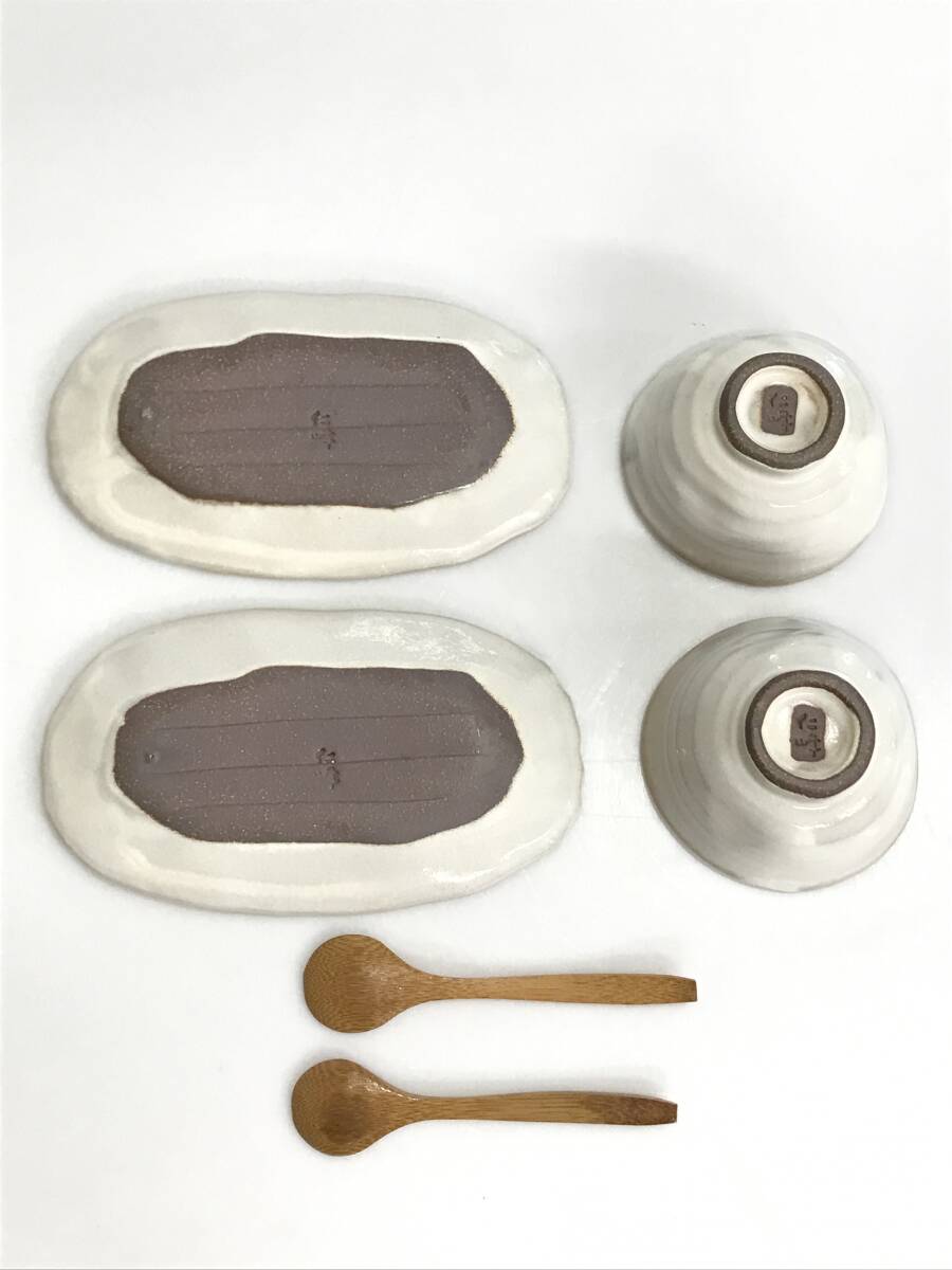 | 商品名 | 仁峯窯 粉引 白雲 ペアデザートセット カップ ソーサー 木製スプーン 和風 食器 |