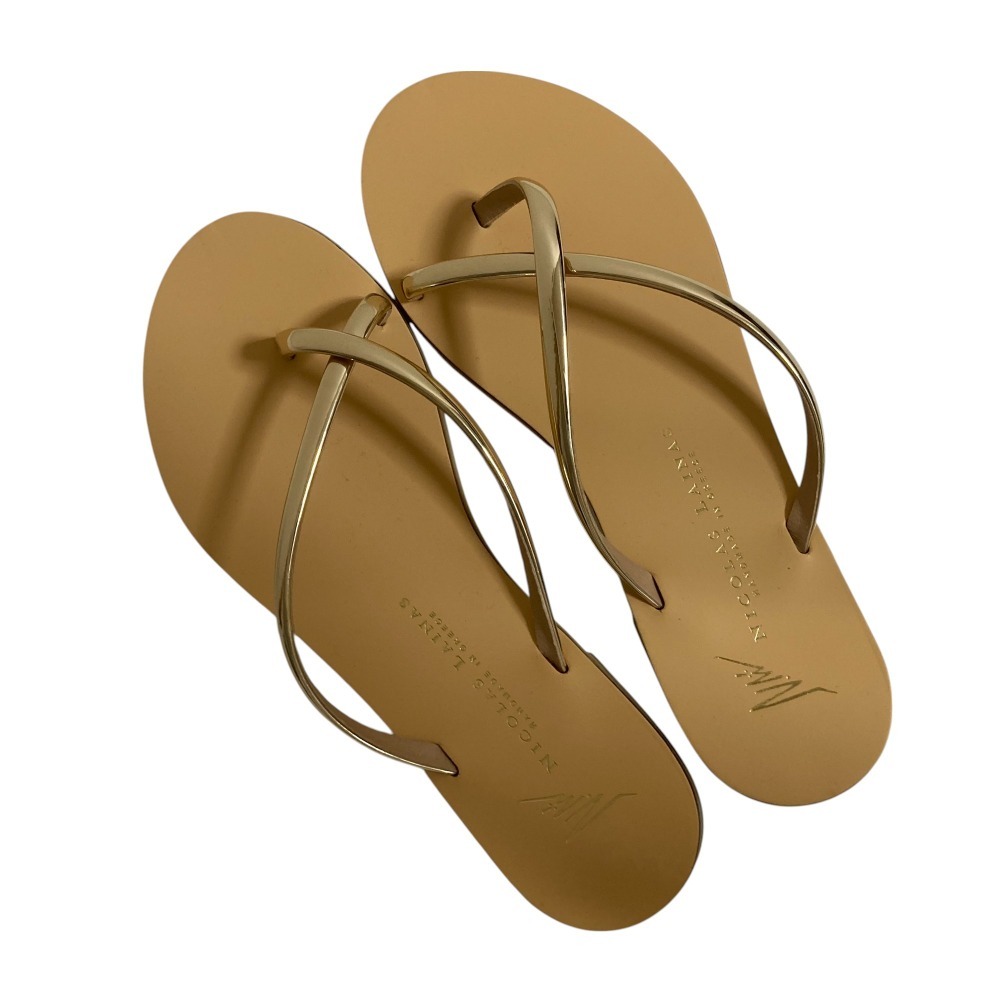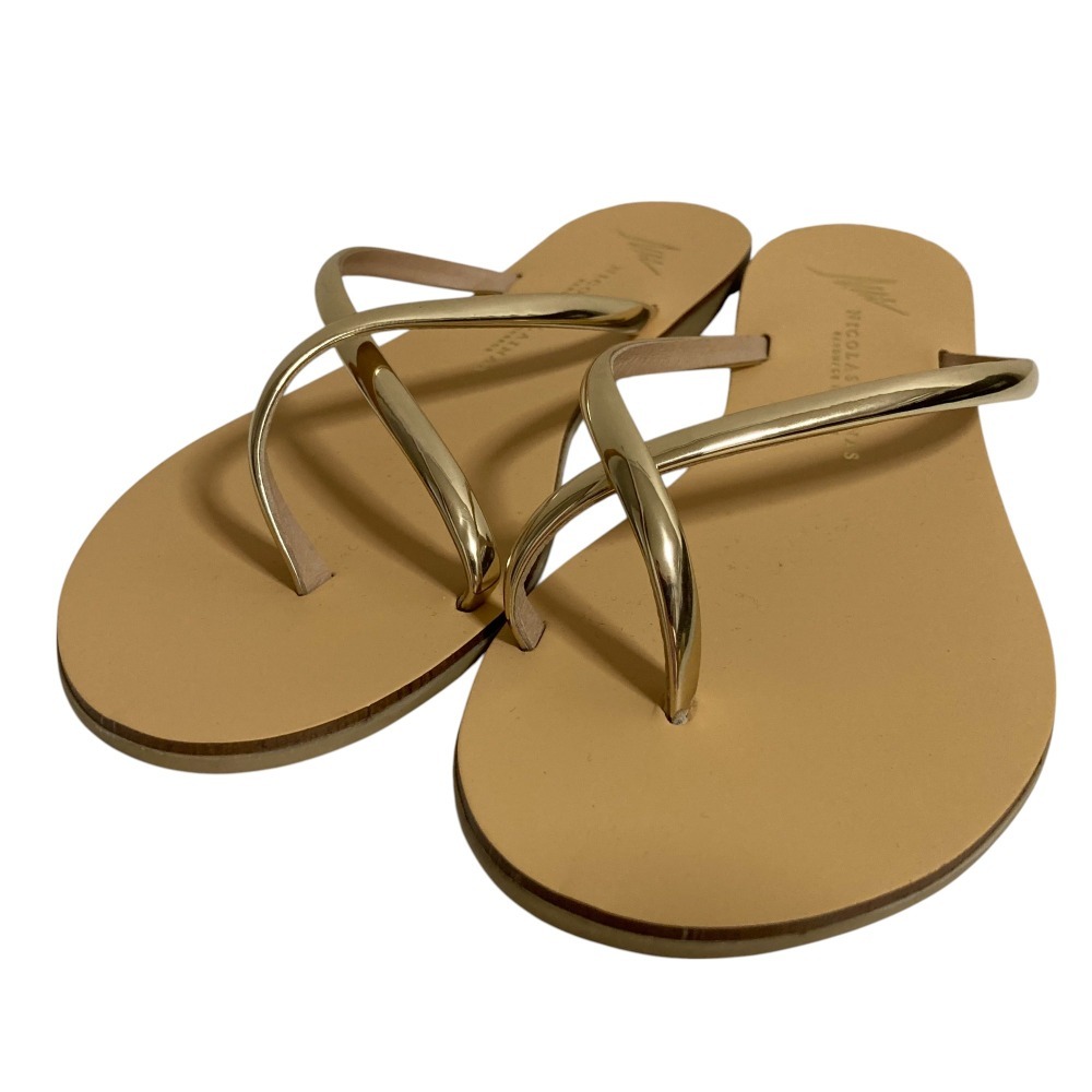 美品 24SS NICOLAS LAINAS ニコラスライナス ドゥーズィエムクラス取り扱い クロスストラップサンダル 37 23.5cm ゴールド