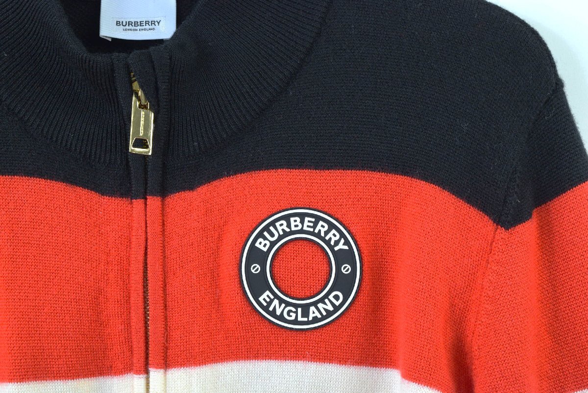 1265-25M0194★ バーバリー Burberry Kids ★12歳/152cm ジップアップニット 黒赤白 秋冬 ニットブルゾン
