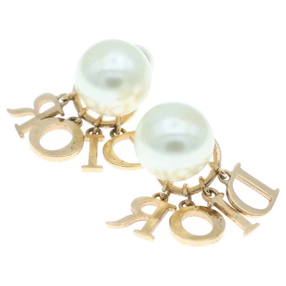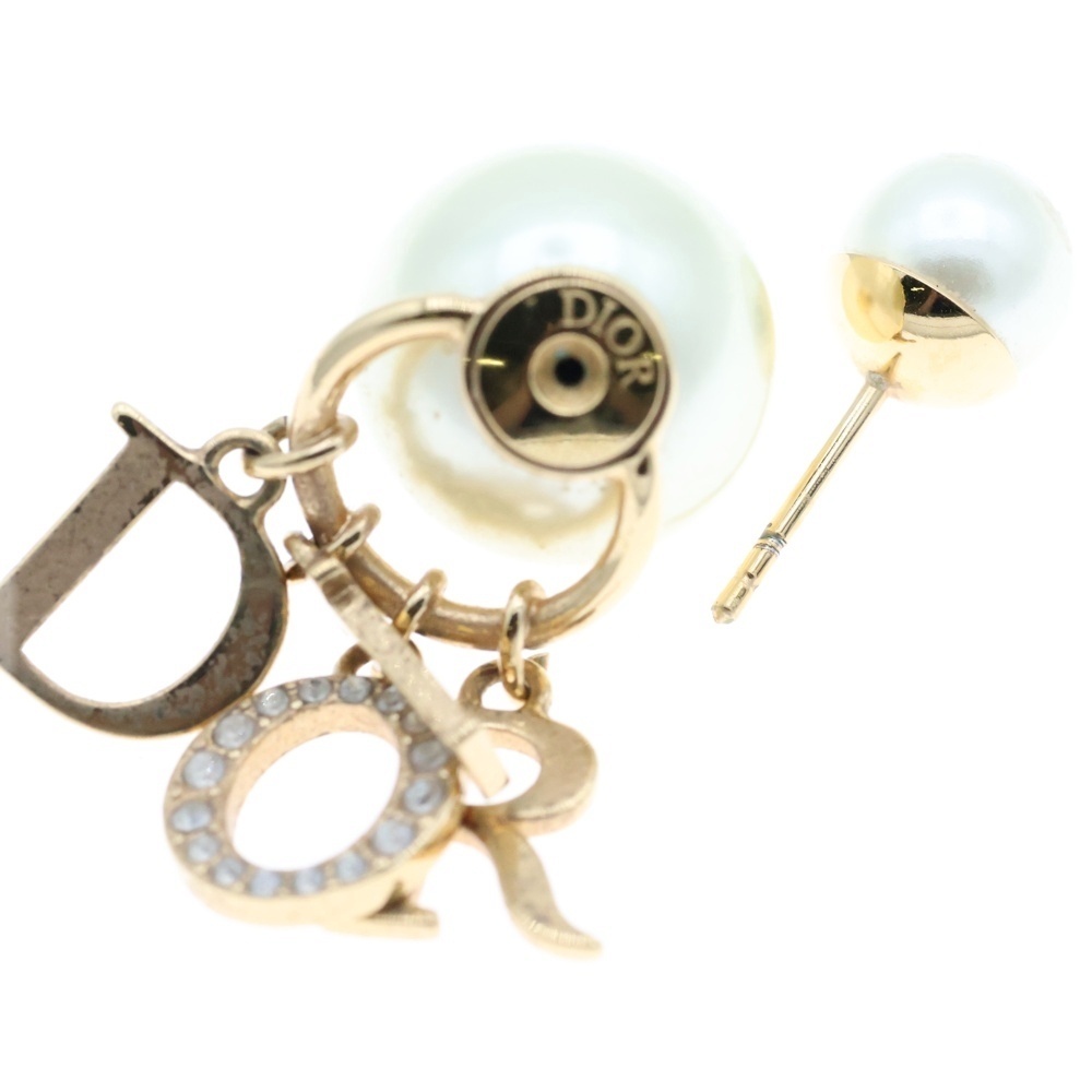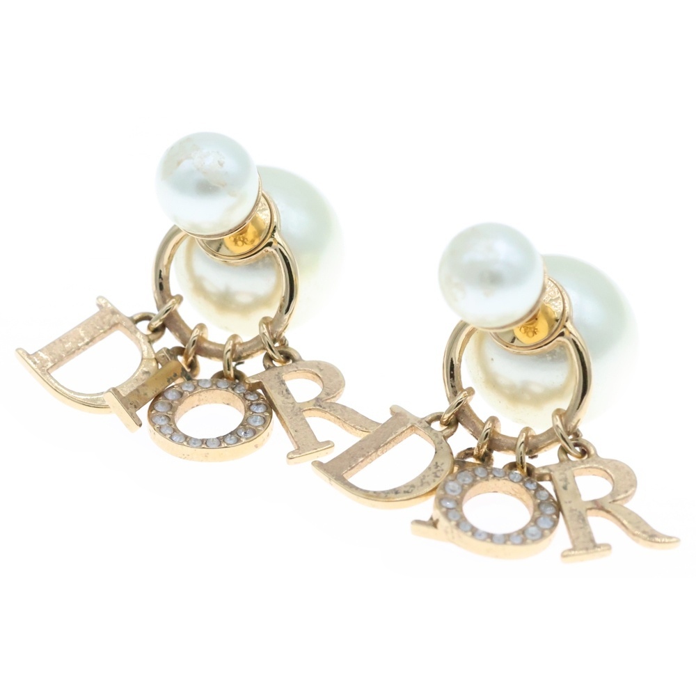 DIOR ディオール Tribales ロゴ トライバルピアス フェイクパール ゴールド GP ラインストーン