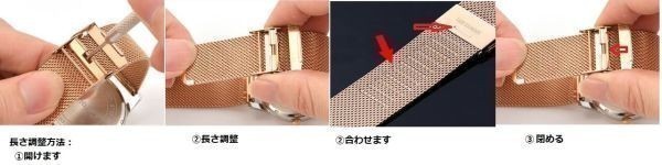 22mm スマートウォッチ バンド 時計バンド 腕時計用ベルト ステンレス 0.6網目スライド式 バックル クラシック メッシュ 3