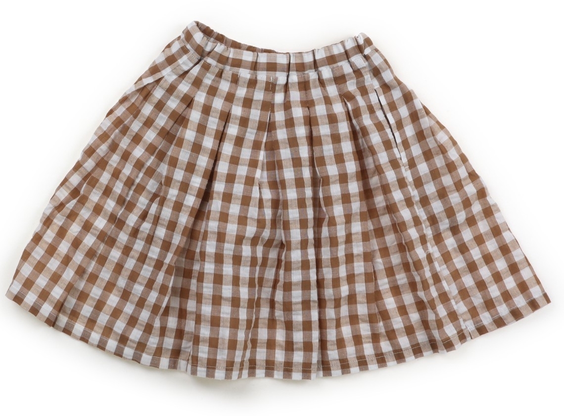 ポリエステル、綿のチェック布帛生地です。ウエストにサイズ調整ゴムが付いています。目立つ汚れはありません。
