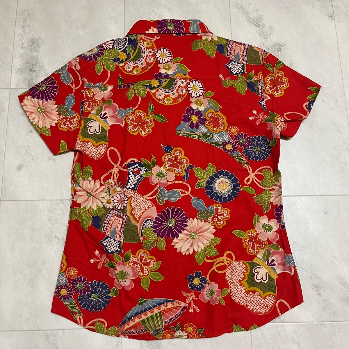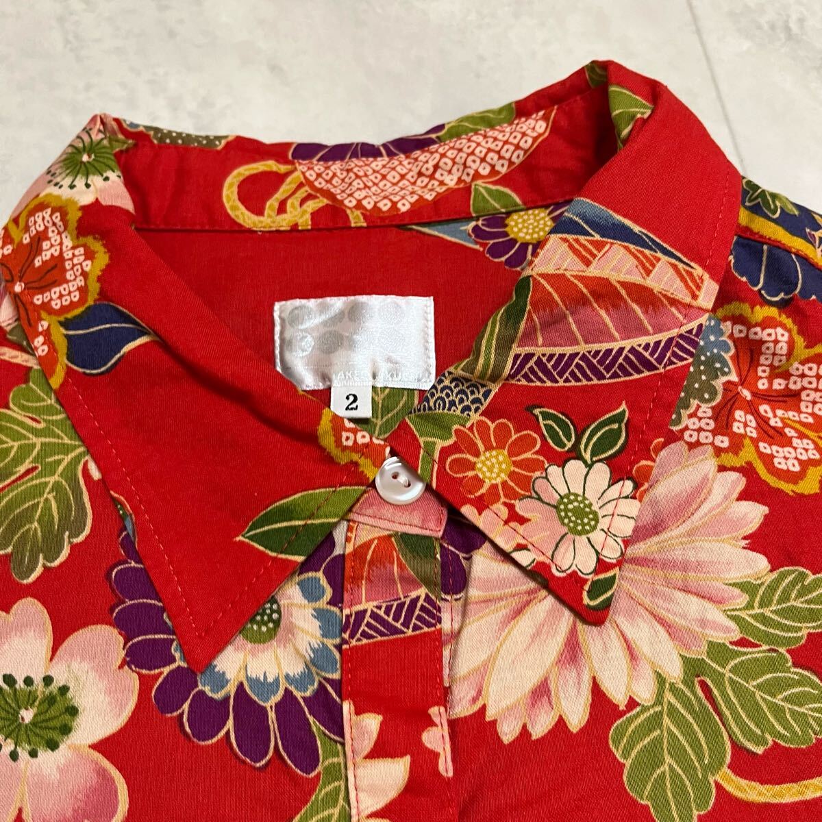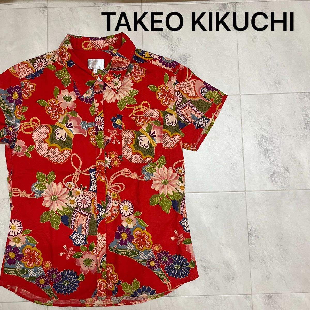 TAKEO KIKUCHI タケオキクチ TK 和柄 半袖 シャツ 総柄 花柄 レトロ レディース レッド 2 (M) 玉mc3925