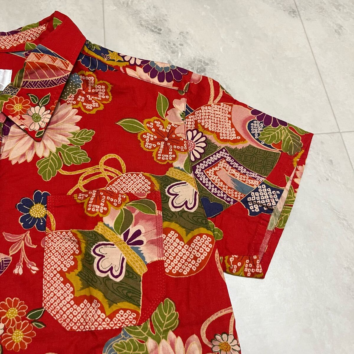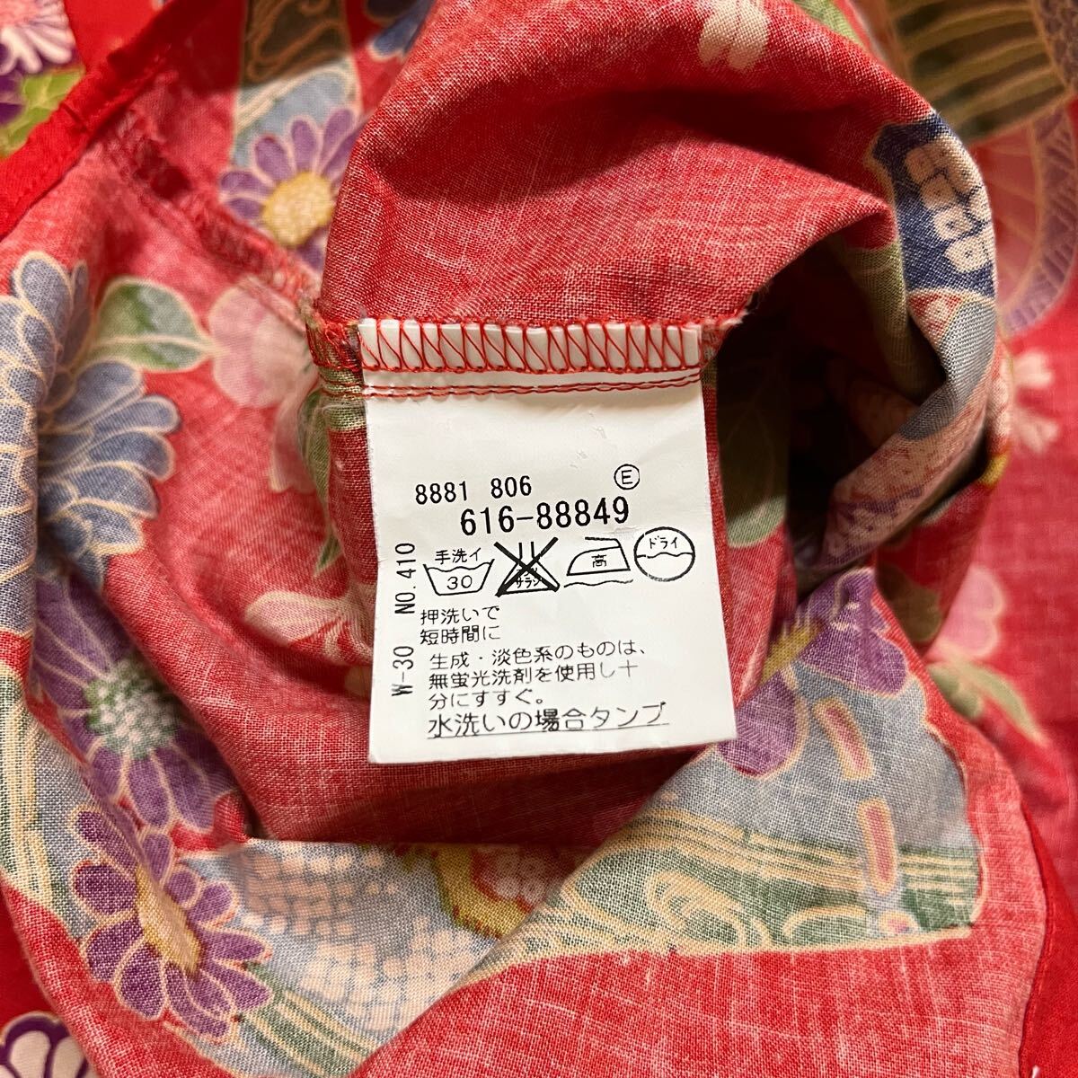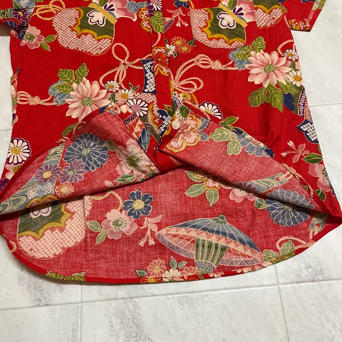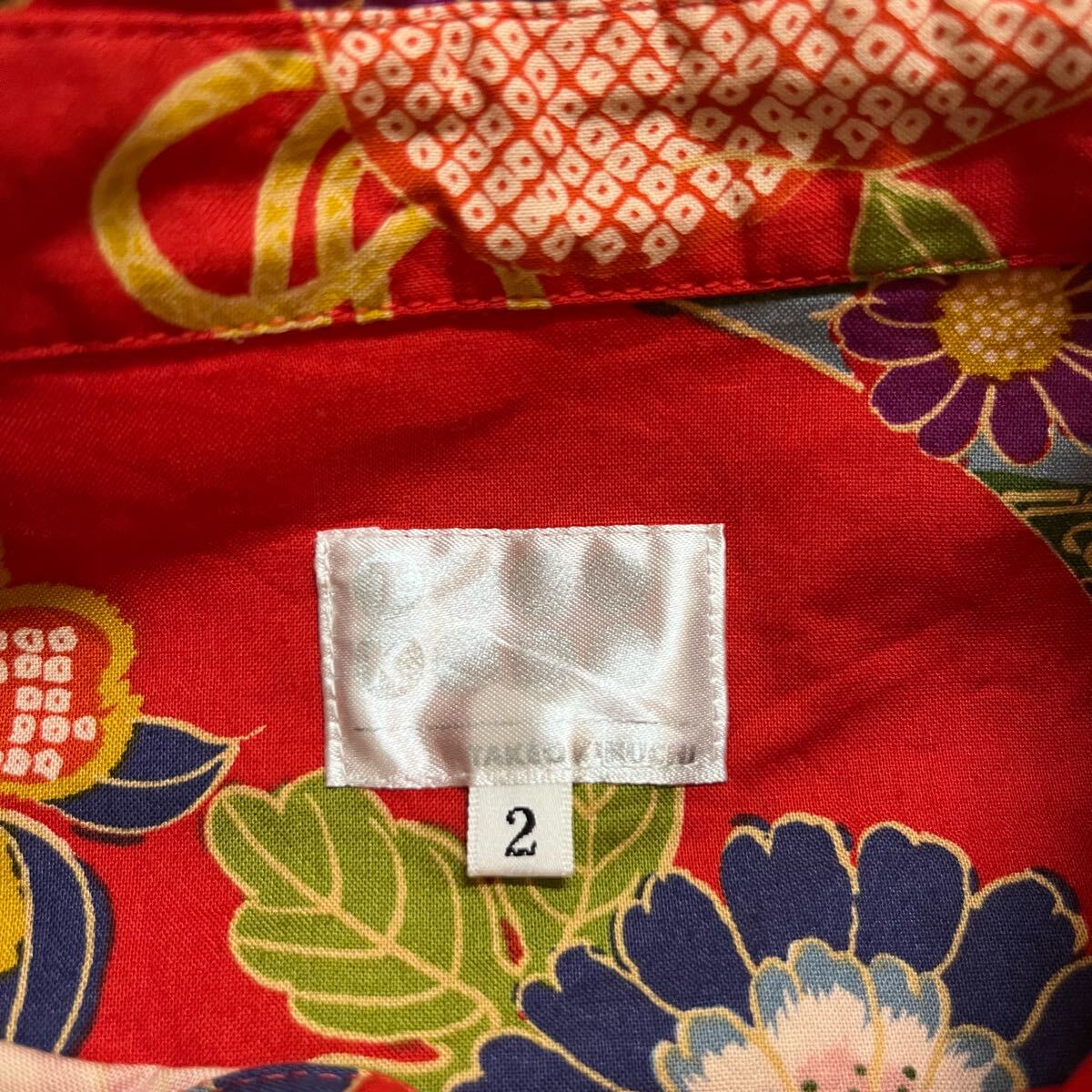 TAKEO KIKUCHI タケオキクチ TK 和柄 半袖 シャツ 総柄 花柄 レトロ レディース レッド 2 (M) 玉mc3925