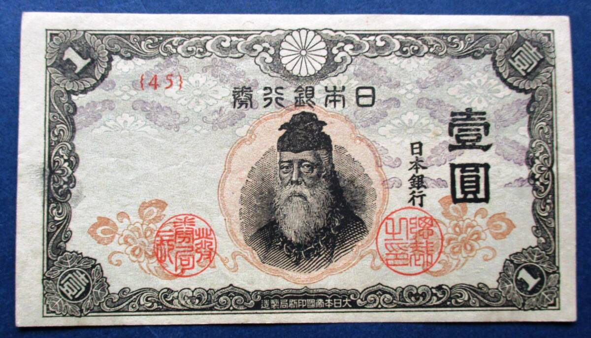 日本紙幣 改正不換紙幣1円 中央武内1円 ほほ未使用ピン札45組 EE44  画像参照してください。