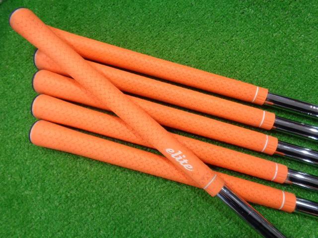 アイアン6本セット★ヘッド全体に当たり傷や擦り傷があるなど使用感があります、まだまだ充分にお使いいただけます。全番手、エリートグリップ装着です。※数値は5Iのものです(ロフト角・ライ角はカタログ値です)。