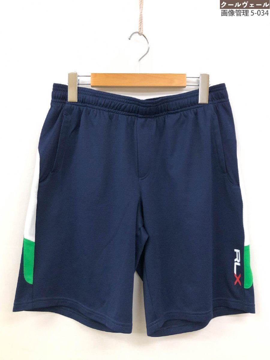 美品【RLX Ralph Lauren ラルフローレン】 ロゴプリント ストレッチイージーショートパンツ (メンズ) sizeL ネイビー系 ◇33MPA3716◇