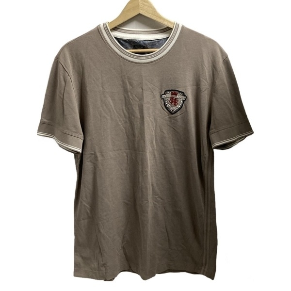 ヒューゴボス HUGOBOSS 半袖Tシャツ サイズM - ベージュ×白×マルチ メンズ クルーネック/刺繍 トップス