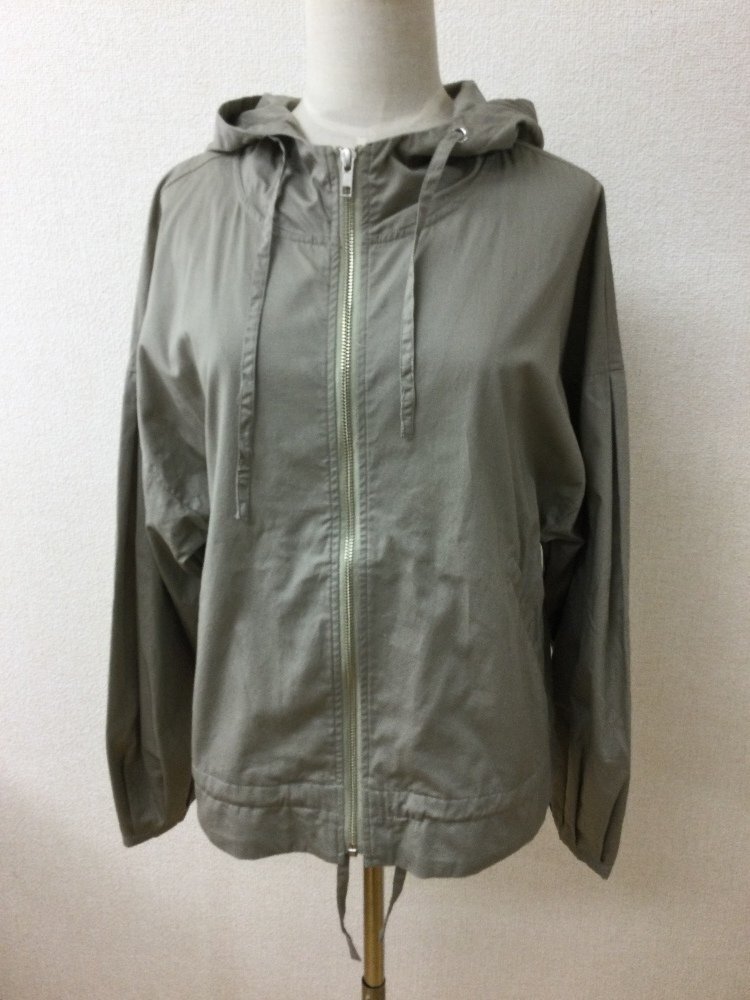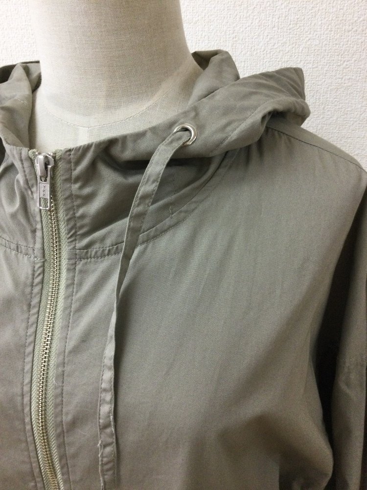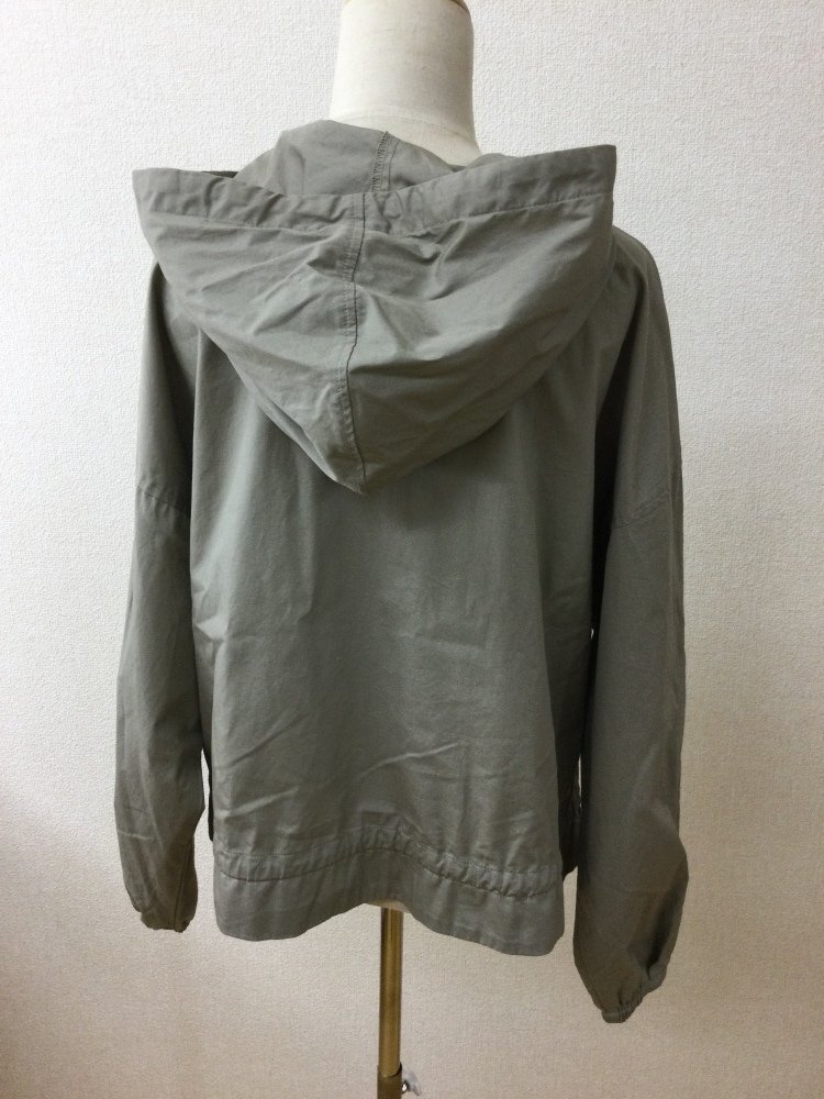 管理番号:10^134263 ヘザー 薄カーキ フード付きブルゾン 薄手 表示サイズ:F 実寸(参考)