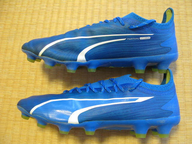 スポーツブランドとして人気のPUMA(プーマ)のサッカー用スパイクシューズの出品です。 三苫選手、堂安選手など多くの選手が着用している人気モデルです。 モデル名は「ULTRA(ウルトラ)アルティメットHG/AG」になります。 カラーは写真で確認ください。 サイズ表記は「24.5cm」になります。 サイズが合わないので出品します。 アッパーの汚れ、ポイント減りも少なく、まだまだ問題なく使用していただけるスパイクだと思います。 詳細の商品状態は、写真で確認ください。 まだ十分に使用して頂ける商品だと思います。 自宅保管の商品という事を理解のうえ写真で判断して頂き入札をお願いします。 不明な点がありましたら「出品者への質問」より質問をお願いします。 ※※※他にも様々なモノを出品しています。※※※ ※※※是非「その他のオークション」もご覧ください。※※※ ※※※落札後に不具合が生じても保証できません。※※※ |