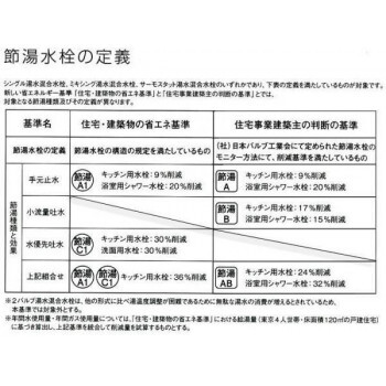 | 仕様 | JISマーク取得済 節湯C1、節湯B 節水水栓 エコ位置クリック 泡沫吐水 寒冷地仕様 |