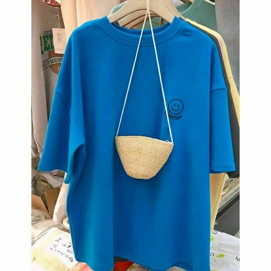 レディース オーバーサイズ Tシャツ 半袖 ラウンドネック テキストプリント カジュアル 韓国風 ゆったりシルエット プラスサイズ対応 オールシーズン 快適素材 おしゃれトップス楽天価格2288円2XL 総丈68cmバストウエスト112cm肩幅55cm袖丈23cm体重63-75kg商品名:『cheese!スマイル オーバーサイズ 半袖 Tシャツ』 ゆるっとカジュアルに可愛く決まる!商品説明:可愛いスマイルマークと「cheese!」のワンポイント刺繍が目を引く、ゆったりシルエットの半袖Tシャツ。しっかりした生地感で1枚でも着映えし、体型カバーもばっちり◎トレンドのオーバーサイズデザインだから、ユニセックスでも楽しめます♪カラバリは気分に合わせて選べる全4色。デニムやスカート、どんなボトムとも相性抜群で、デイリーユースにぴったり!ポイント:・ユニセックス対応のゆったりシルエット・柔らかくて肌触りのいいコットン素材・さりげない刺繍デザインで、シンプルながら遊び心も◎・選べる4色展開(ブラック/ホワイト/ブルー/イエロー)ピンク欠品です。まとめ買いで合計から200円引き致します