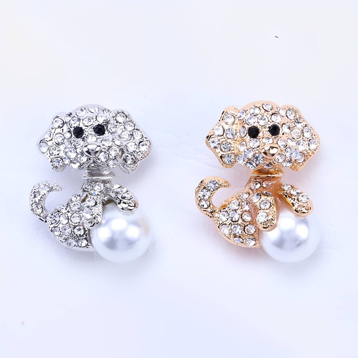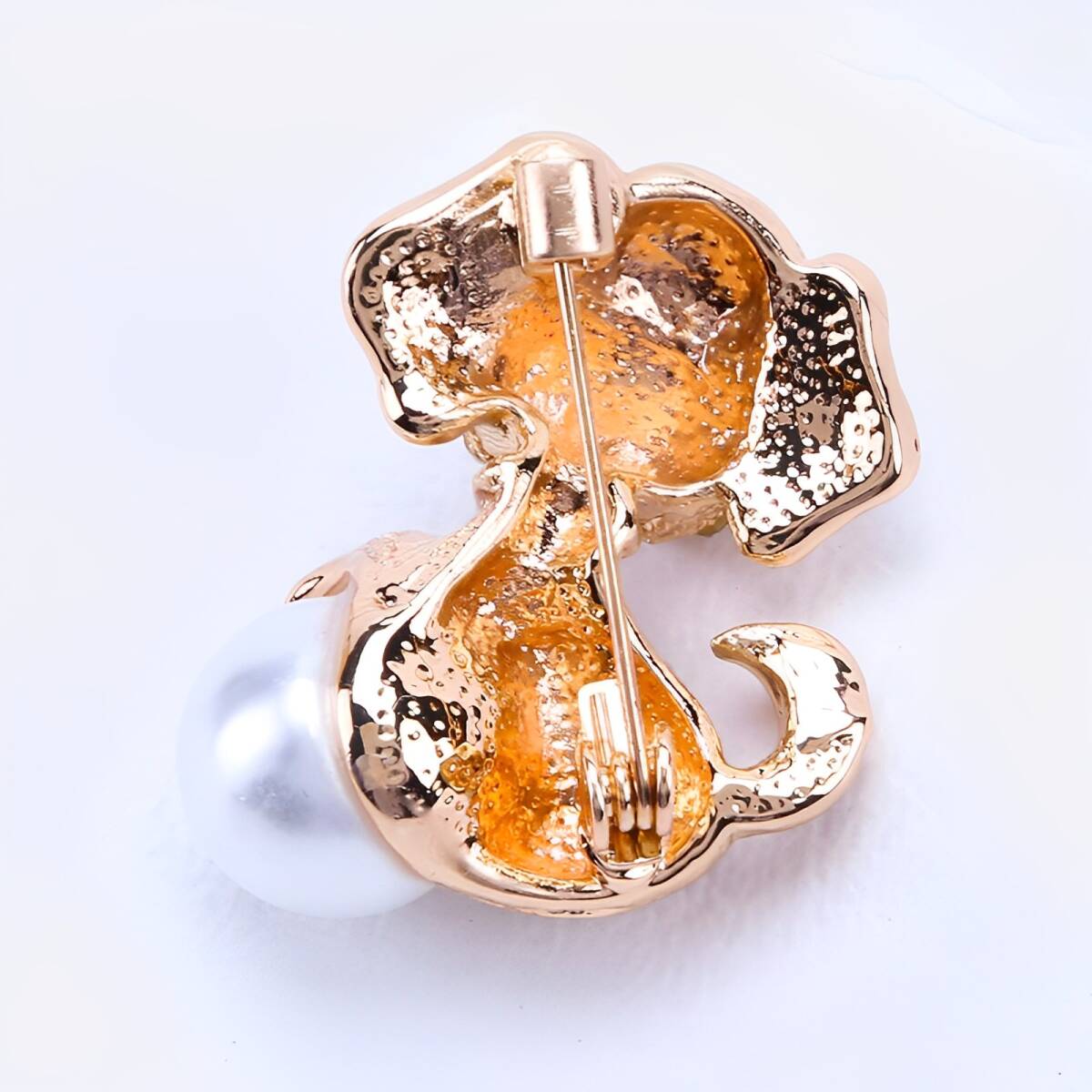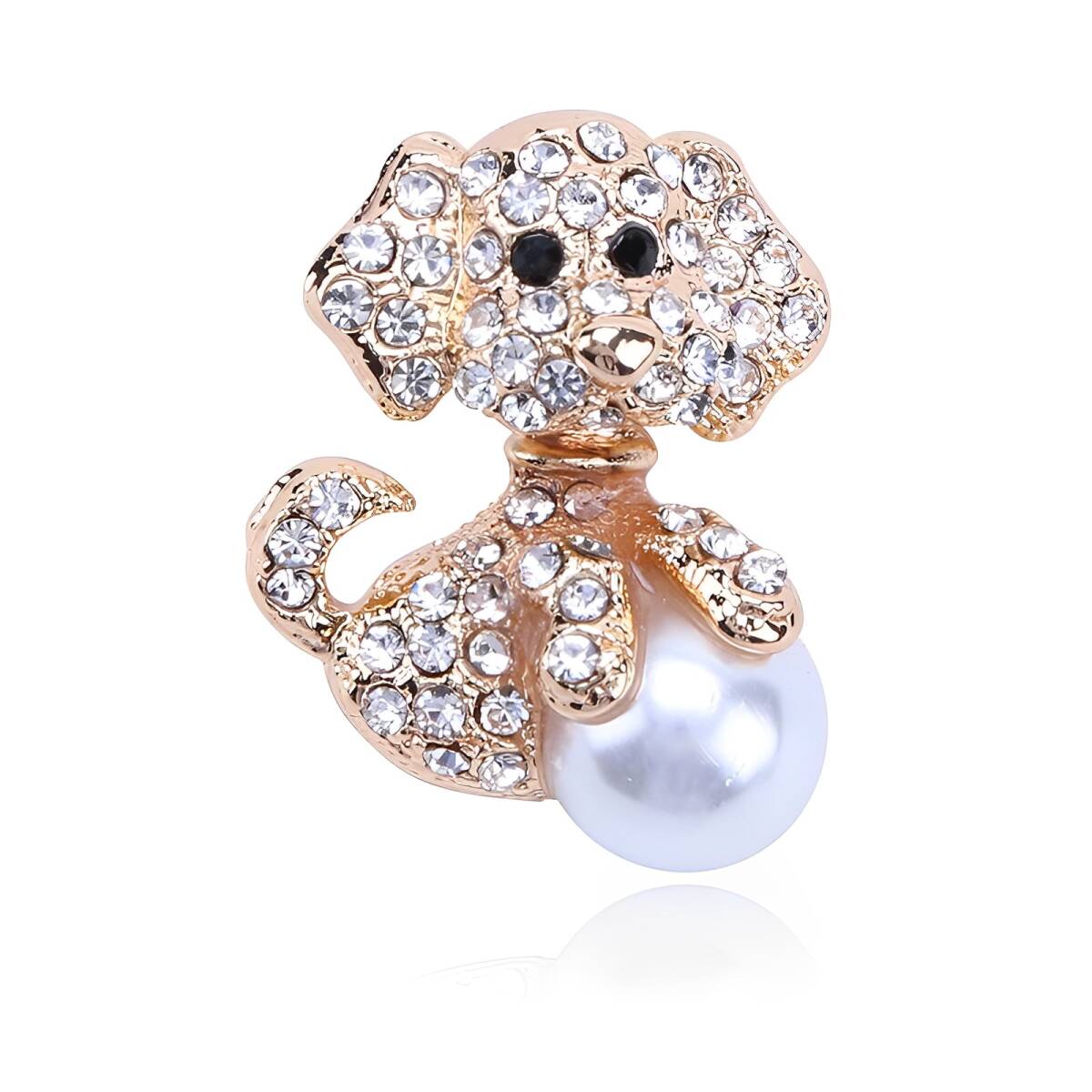 【動物】パール 可愛い ボール遊び 犬 ブローチ/ゴールド