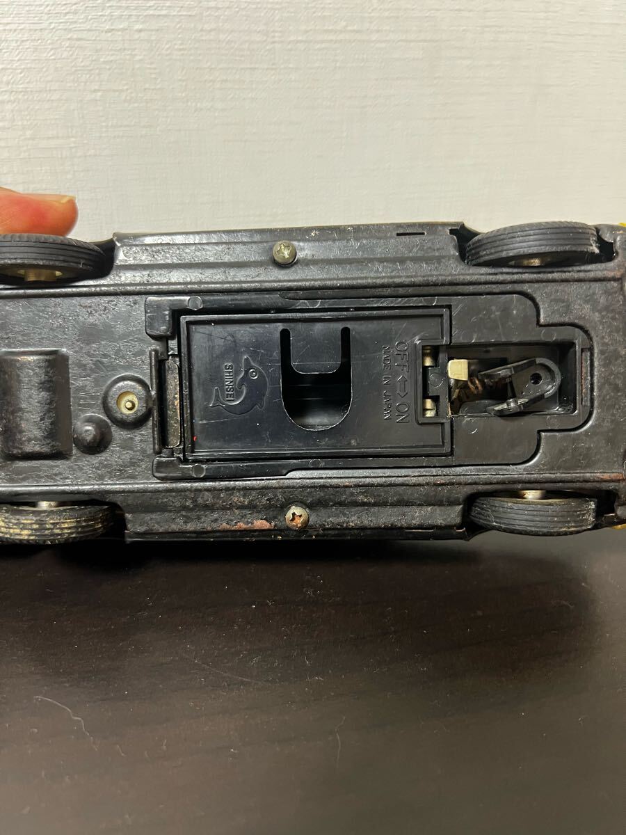 日本の警察車両デザインのミニカー、通電して赤色灯光ります、正常動作正解がわからないですが、前後に動きます。