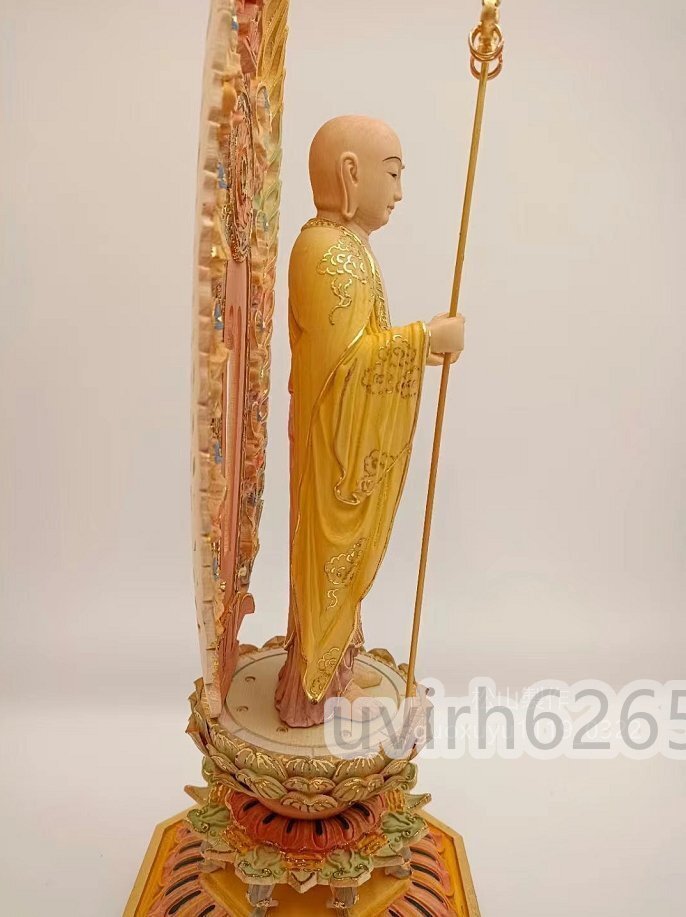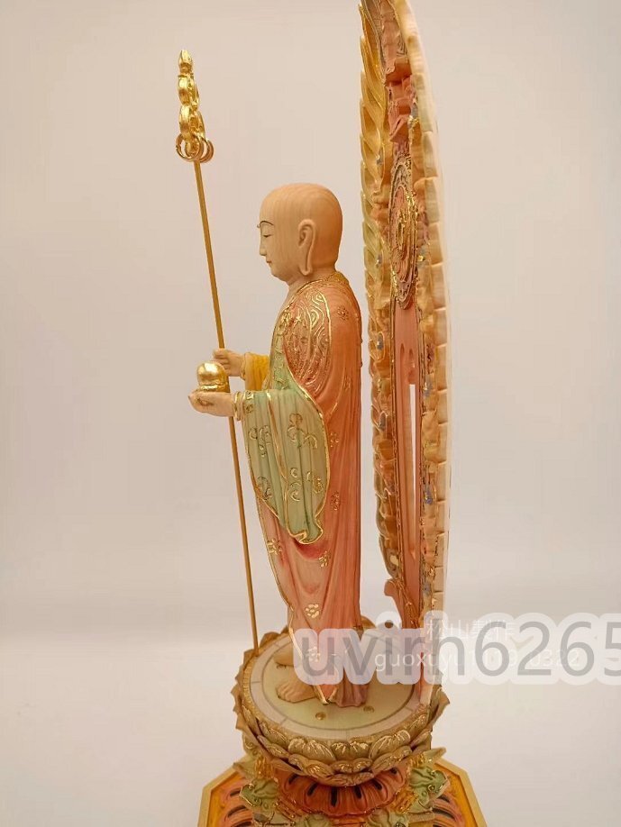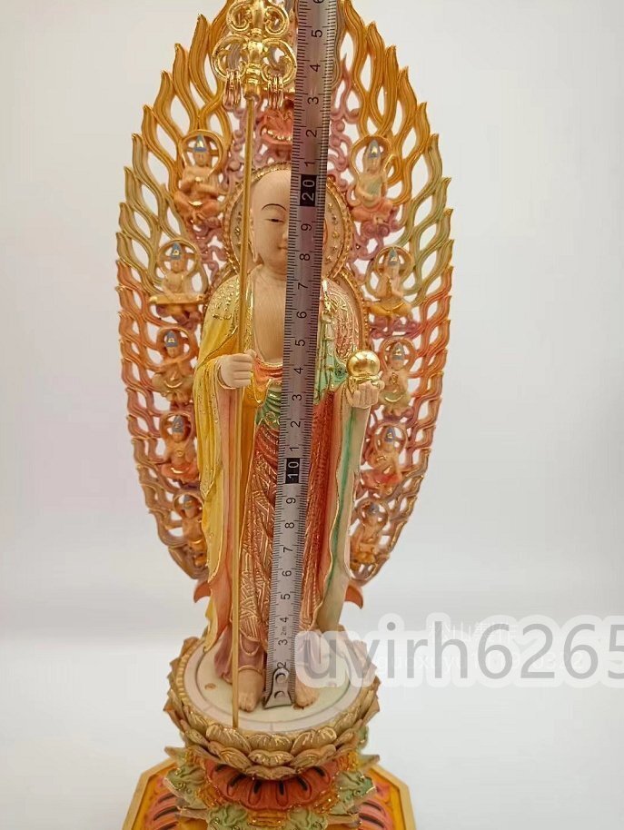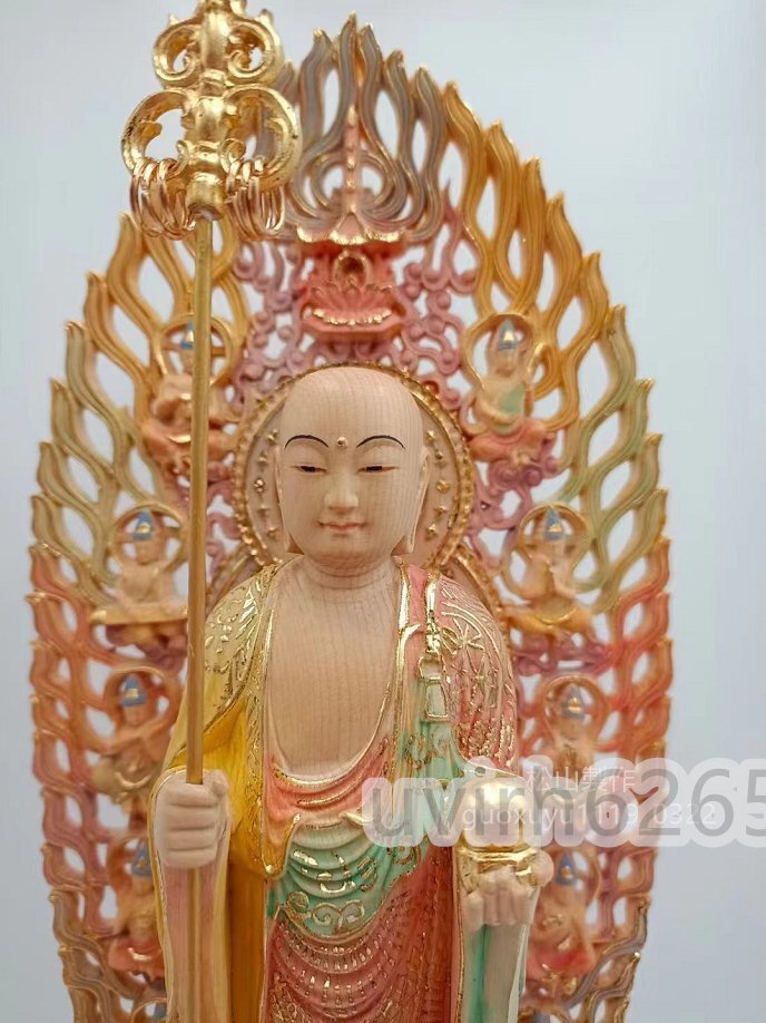最新作 総檜材 木彫仏像 仏教美術 手彫り 切金 珍品 地蔵王菩薩像 高さ39cm