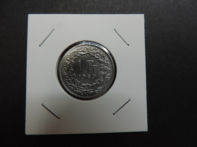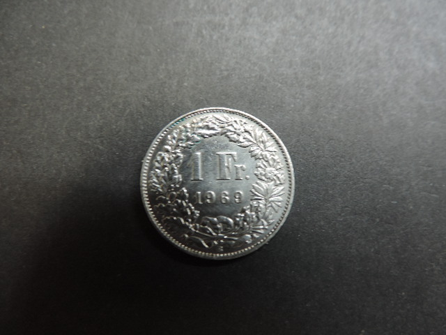 ★スイス連邦★ 1969年 1フラン サイズ:約23,13㎜・重量:約4,43g 中古品・美品
