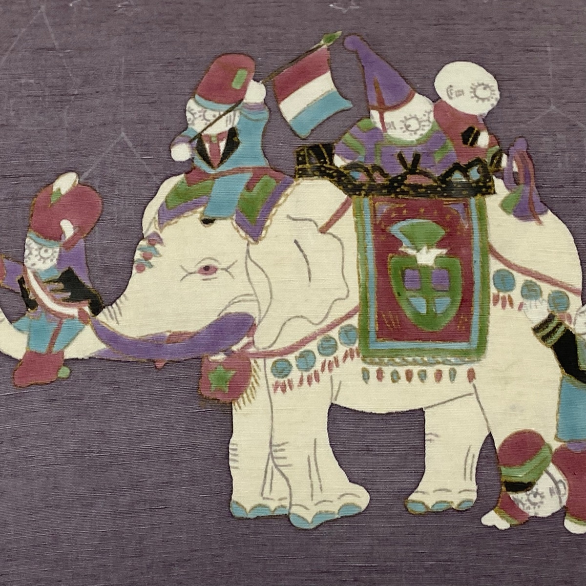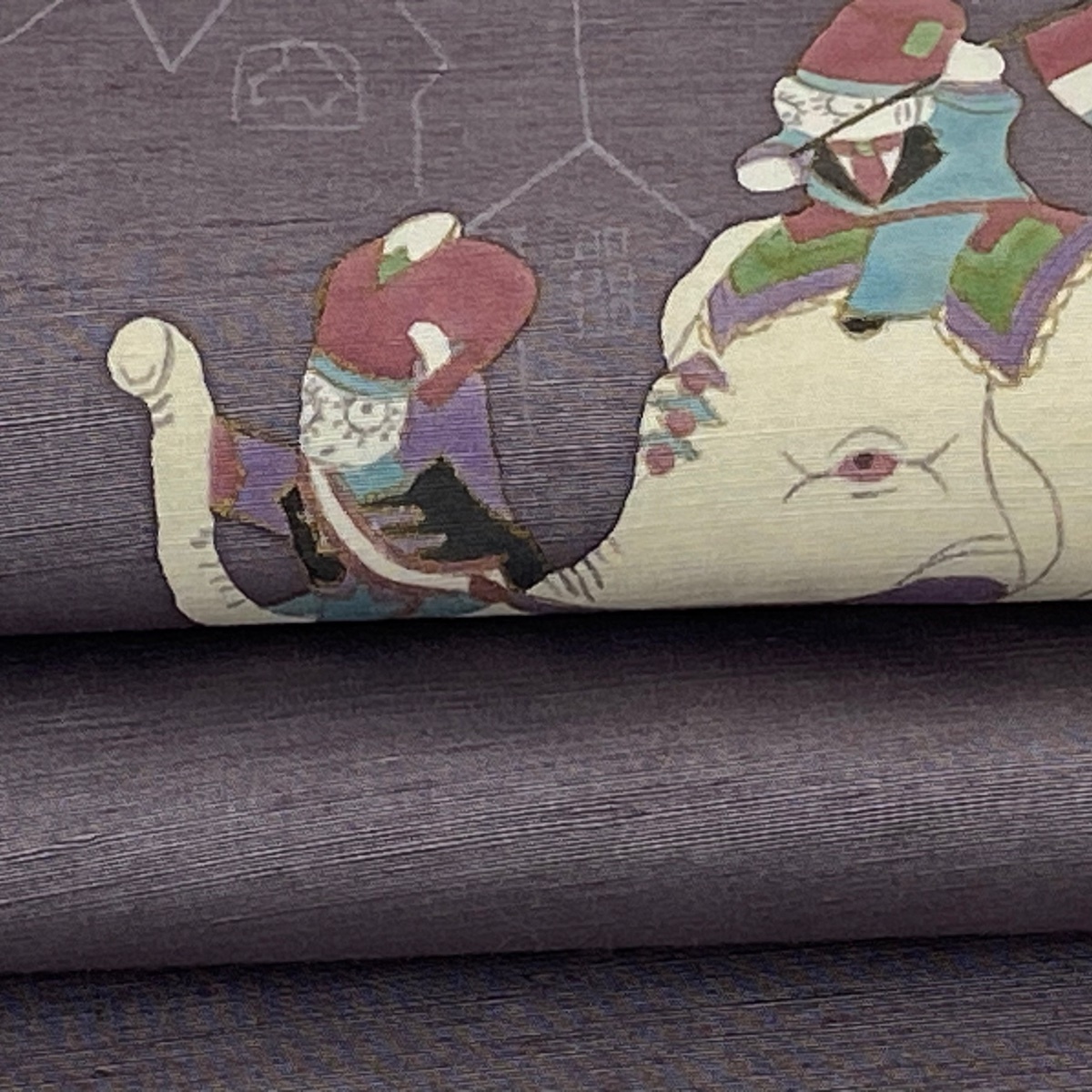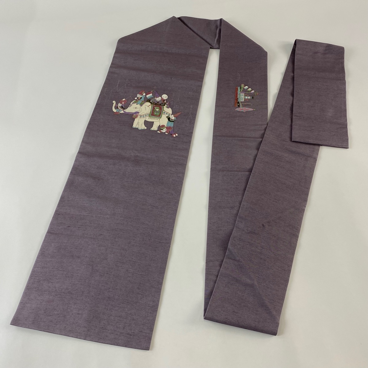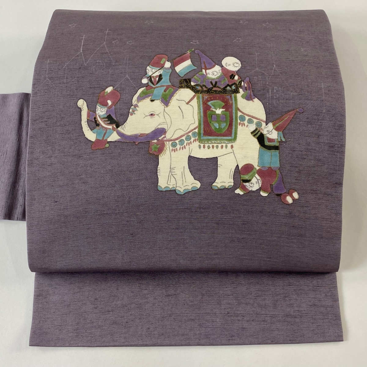 | 名古屋帯 逸品 紬地 ゾウ 金彩 灰紫 正絹 【中古】 |