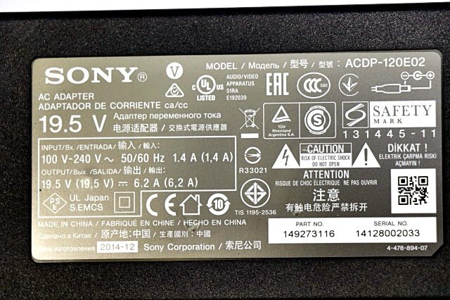 3個入荷 SONY/ソニー 液晶テレビ BRAVIA 純正ACアダプター ▼ACDP-120E02/ KDL-50W800B他用▲ 56577Y