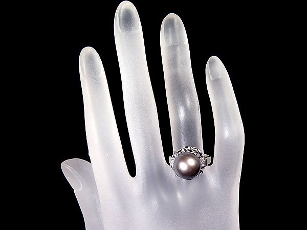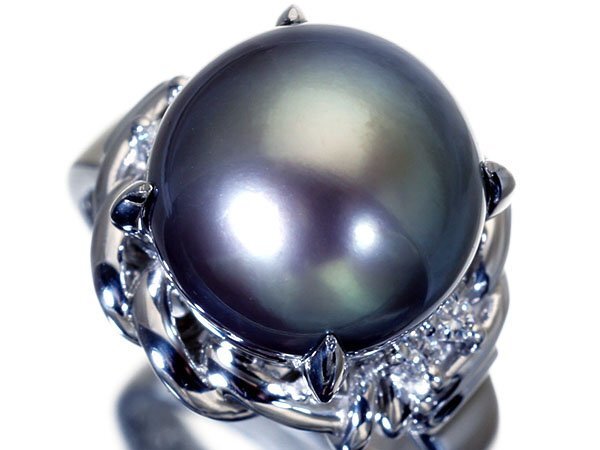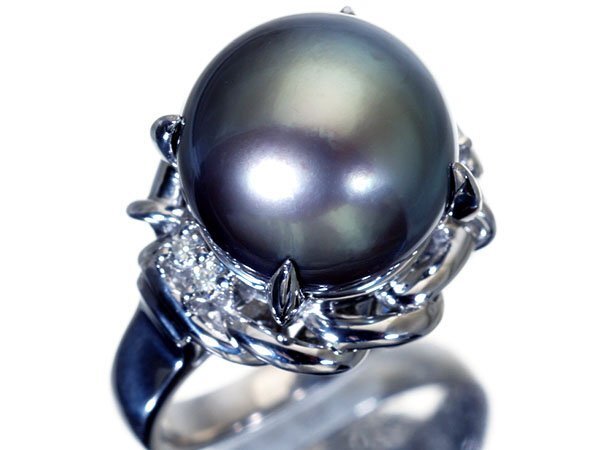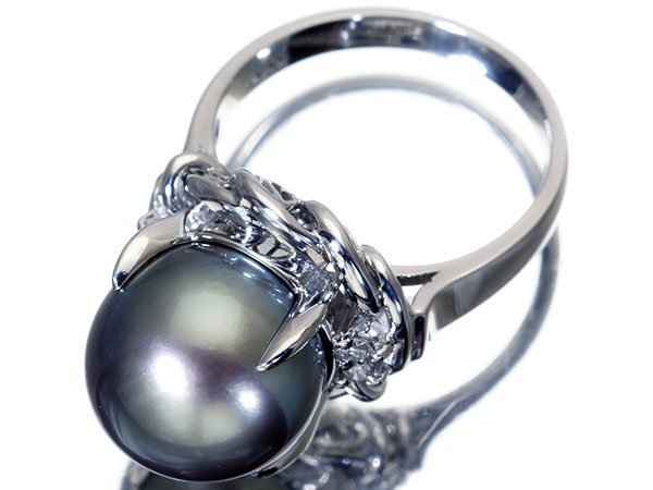 綺麗な艶と照り放つ良質南洋ブラックパール11.9mm珠&ダイヤモンド総計0.07ctを素敵に宝飾した、高級Pt900リングを激安価格で特別大放出致します!
