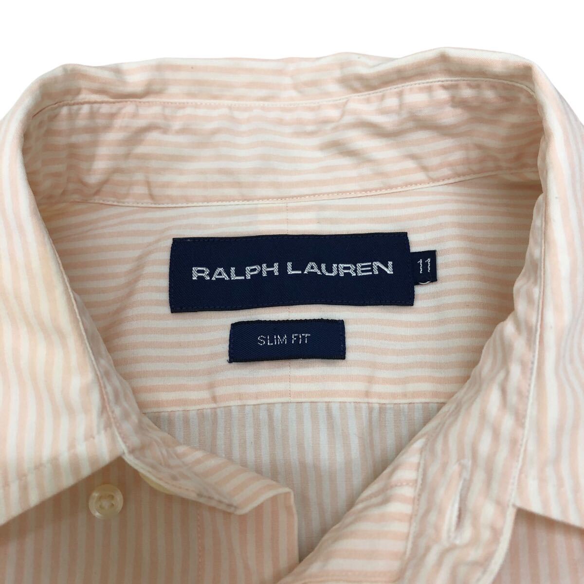 K322-57 RALPH LAUREN ラルフローレン SLIM FIT 長袖 シャツ ストライプ オレンジ レディース 11