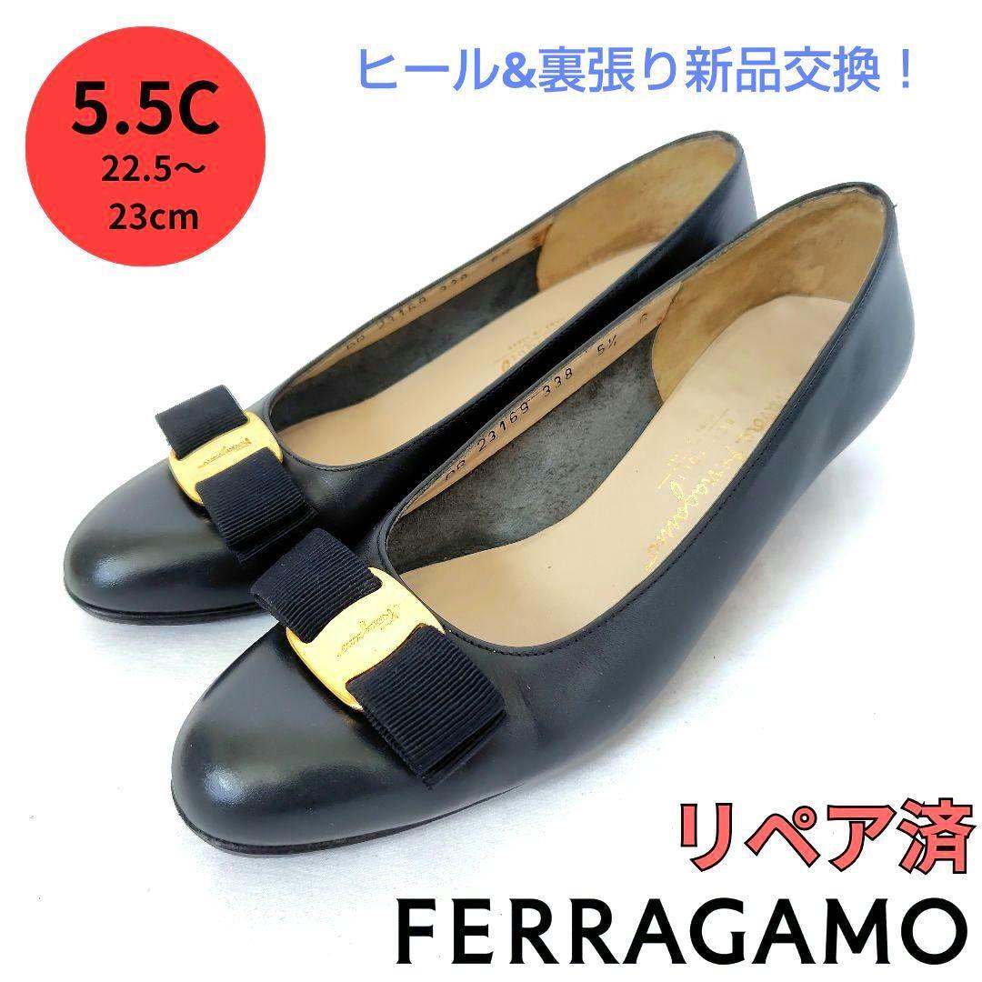 #リペア済み #修理済み #ヒール新品 #クリーニング #フォーマル #卒業式 #入学式#パンプス#ブランド#ハイブランド#ネイビー#フェラガモ#Ferragamo#レディースシューズ#レザーパンプス#23cm#フェラガモパンプス#おしゃれ#シンプルパンプス#ヴァラパンプス