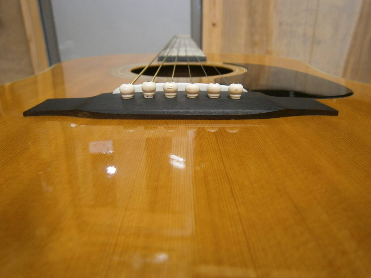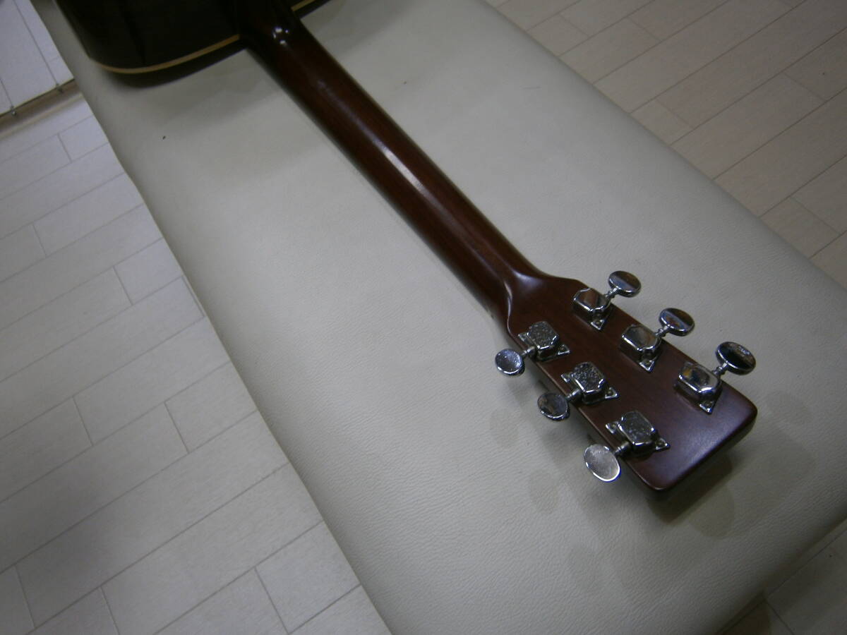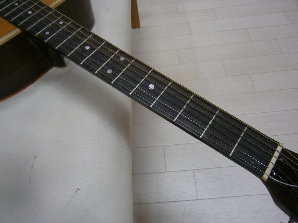 ◎ネックは、反りはありませんが元起きがあります、ブリッジの下側も少しですが膨らみがあります、サウンドホール側への中落ちはありません、ネックとボディの接合部分がサウンドホール側が少し低くなっている状態で、そのせいもあり元起きになっています。弦高は12フレット6弦で約4.0ミリ(1円玉を2枚入れてかなり余裕がある位)、1弦で約3.2ミリ(1円玉を2枚入れて少し余裕がある位)です。ブリッジサドルは余裕があります(画像あり)。フレットは場所により2~3分山弱程度(あくまで目分量です)減りがあります、残り山は7~8分山あります、主に弦の形で減っている減り方です。ペグは回す時に固いです。