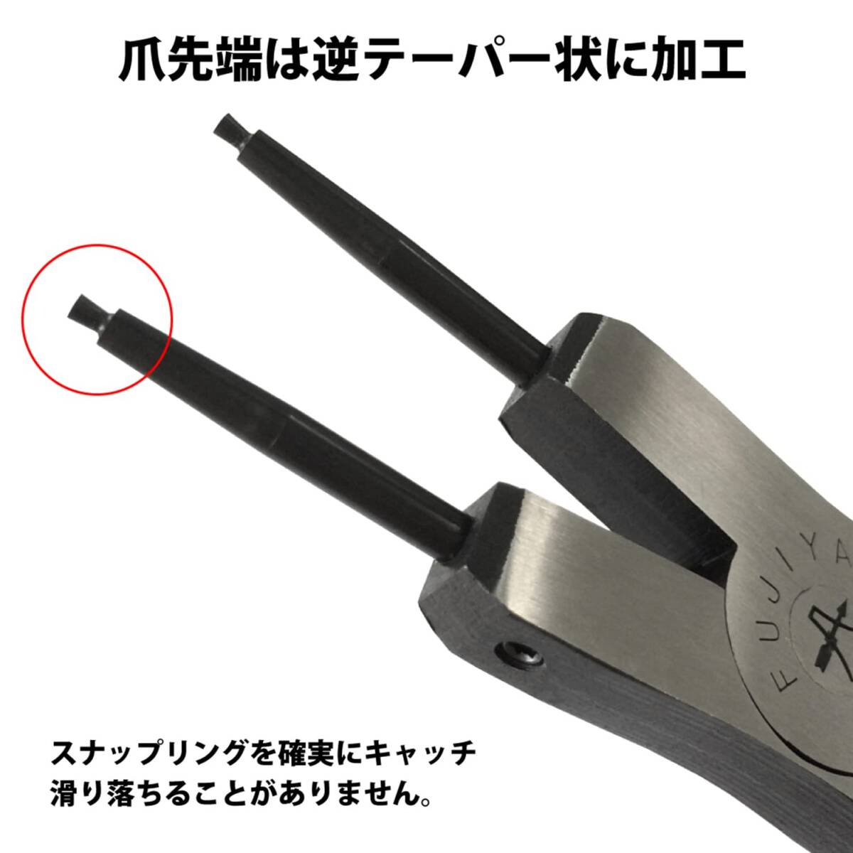 フジ矢 スナップリングプライヤー (握ると先端が閉じる穴用・直爪)先端直径φ2.0mm リング範囲12-65mm 替え爪式 185mm FCS-
