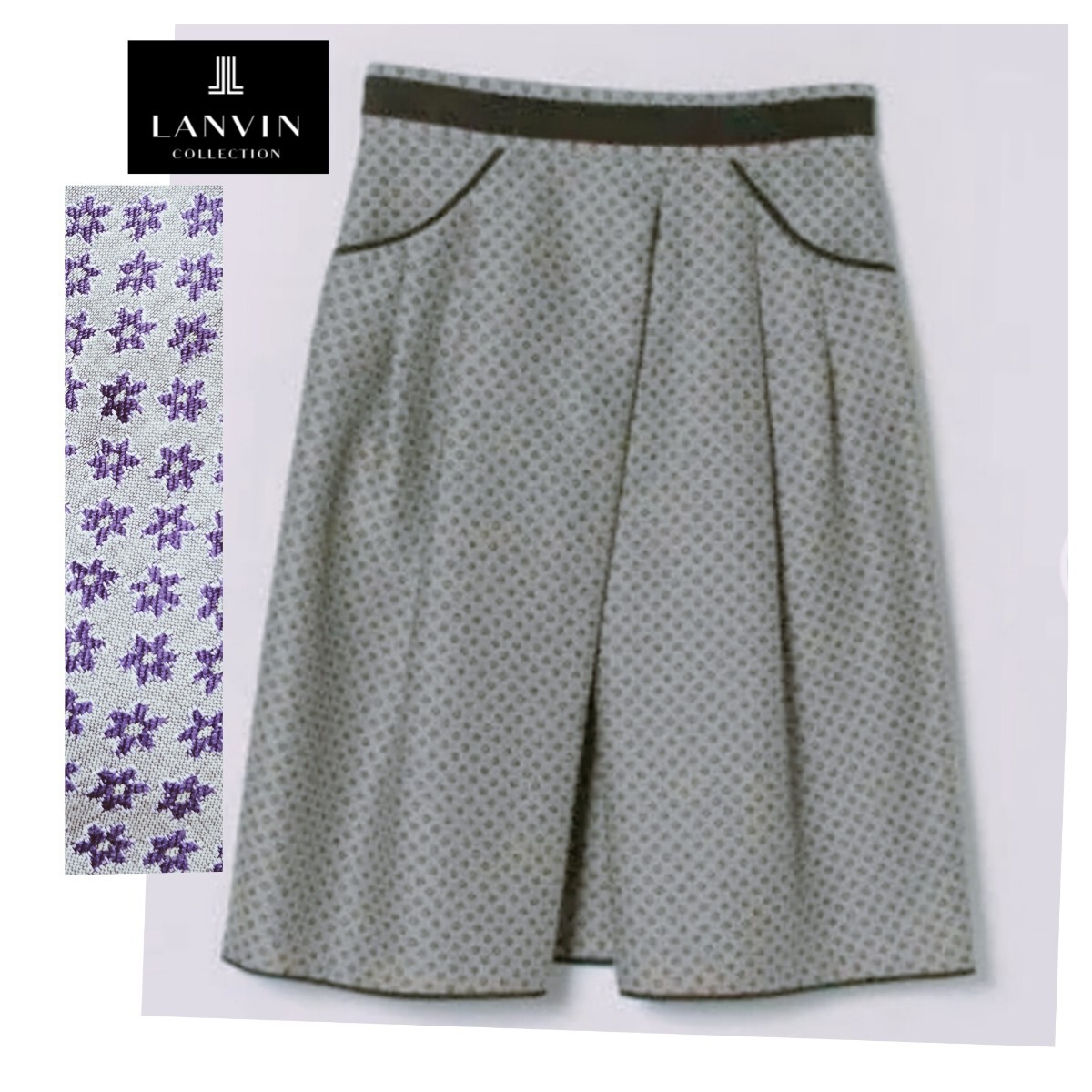 未使用*LANVIN COLLECTION*ランバンコレクション*マーガレット柄*ジャガードタックフレアスカート*サイズ40*定価4.9万*日本製*花柄*w74