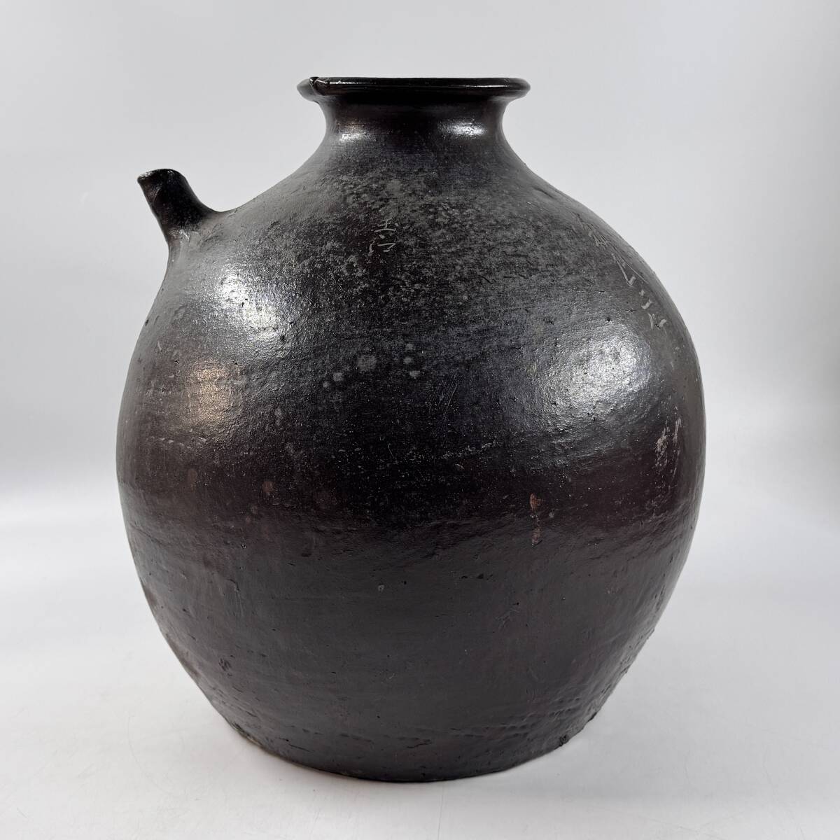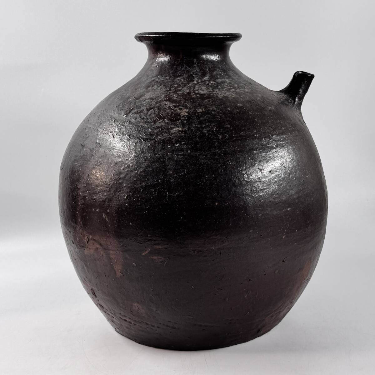 若干不格好な口縁や表皮がヒビや欠けではなく釉薬が剥離している箇所などがある場合が在りますが、液体を醸造の大樽から小型の容器へ移し替える際の中間容器としての実用のみに特化した道具であると伺っておりますので、その旨ご理解いただいた上でのご検討をお願いします。