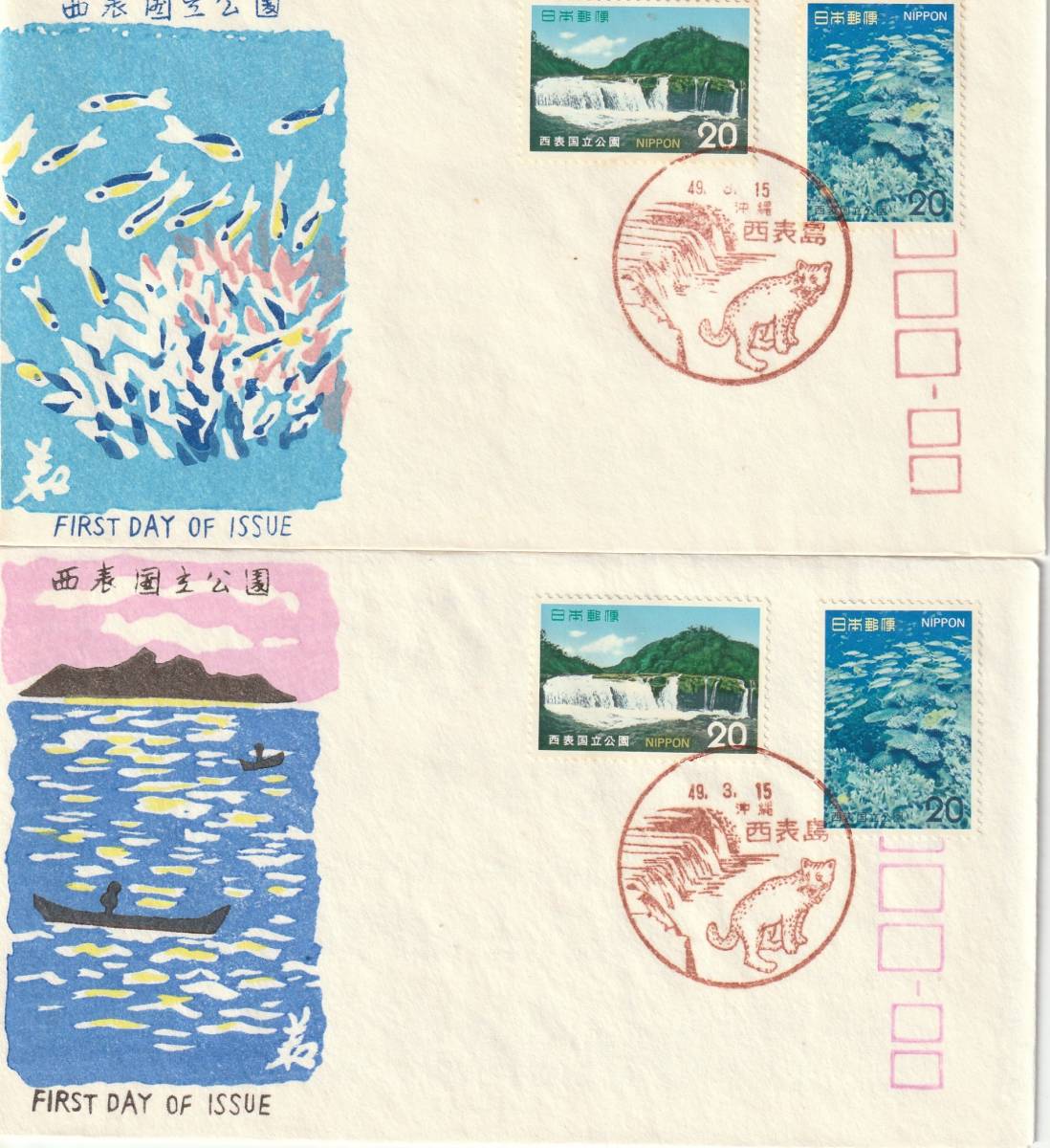 FDC  1974年  西表国立公園  20円2貼  2通  松屋