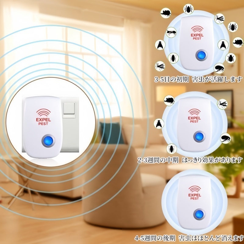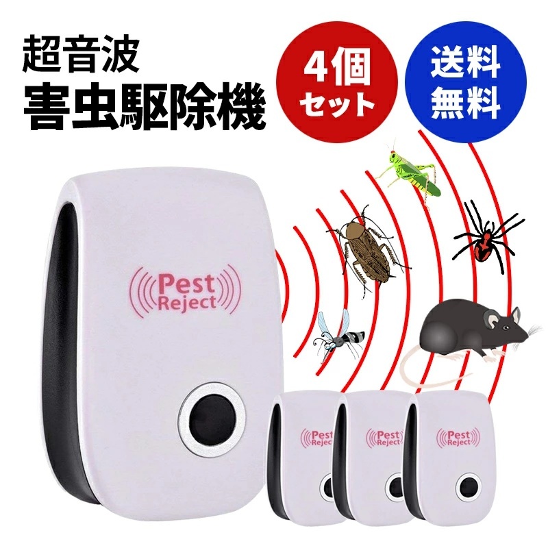 4個セット超音波式 害虫駆除機器 虫除け 蚊除け 安全 無毒無臭 超音波式バグバスター 害虫 駆除機360 シャットアウト ネズミ ゴキブリ撃退