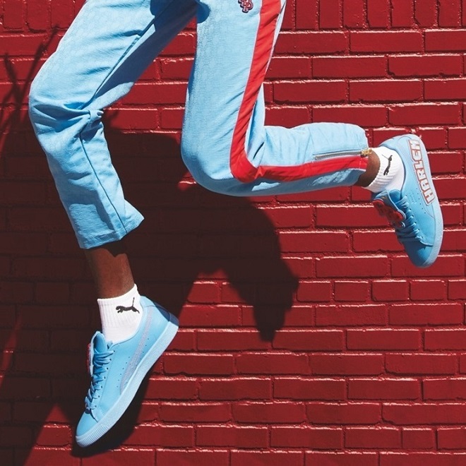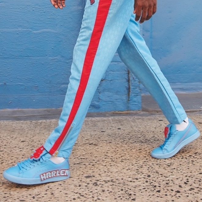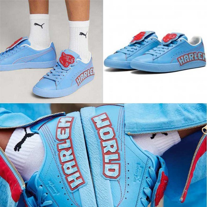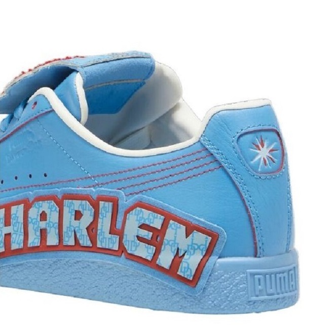 サイドには自身のネームを刻印し、さらに"HARLEM"、"WORLD"のラバーパッチを、そしてシュータンには