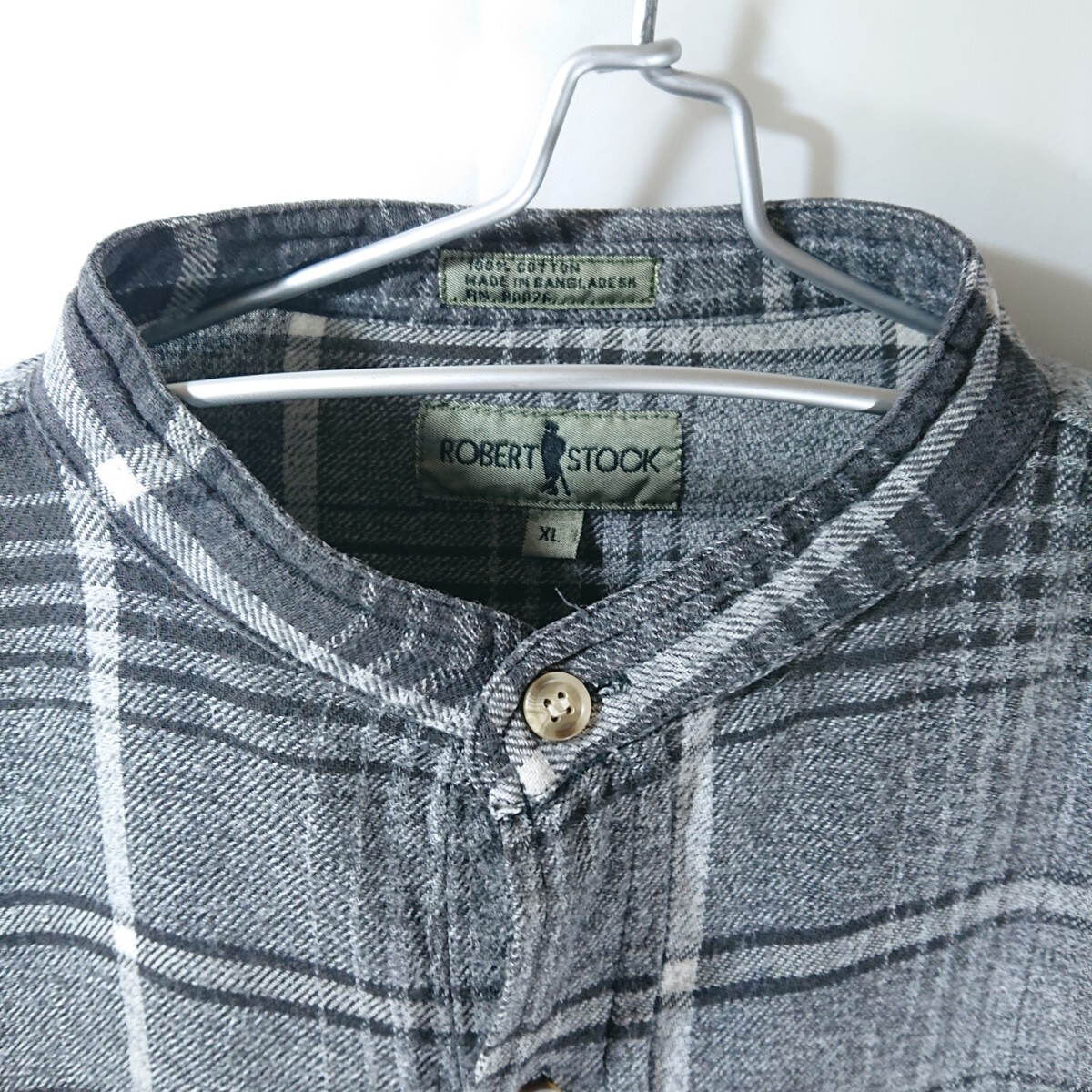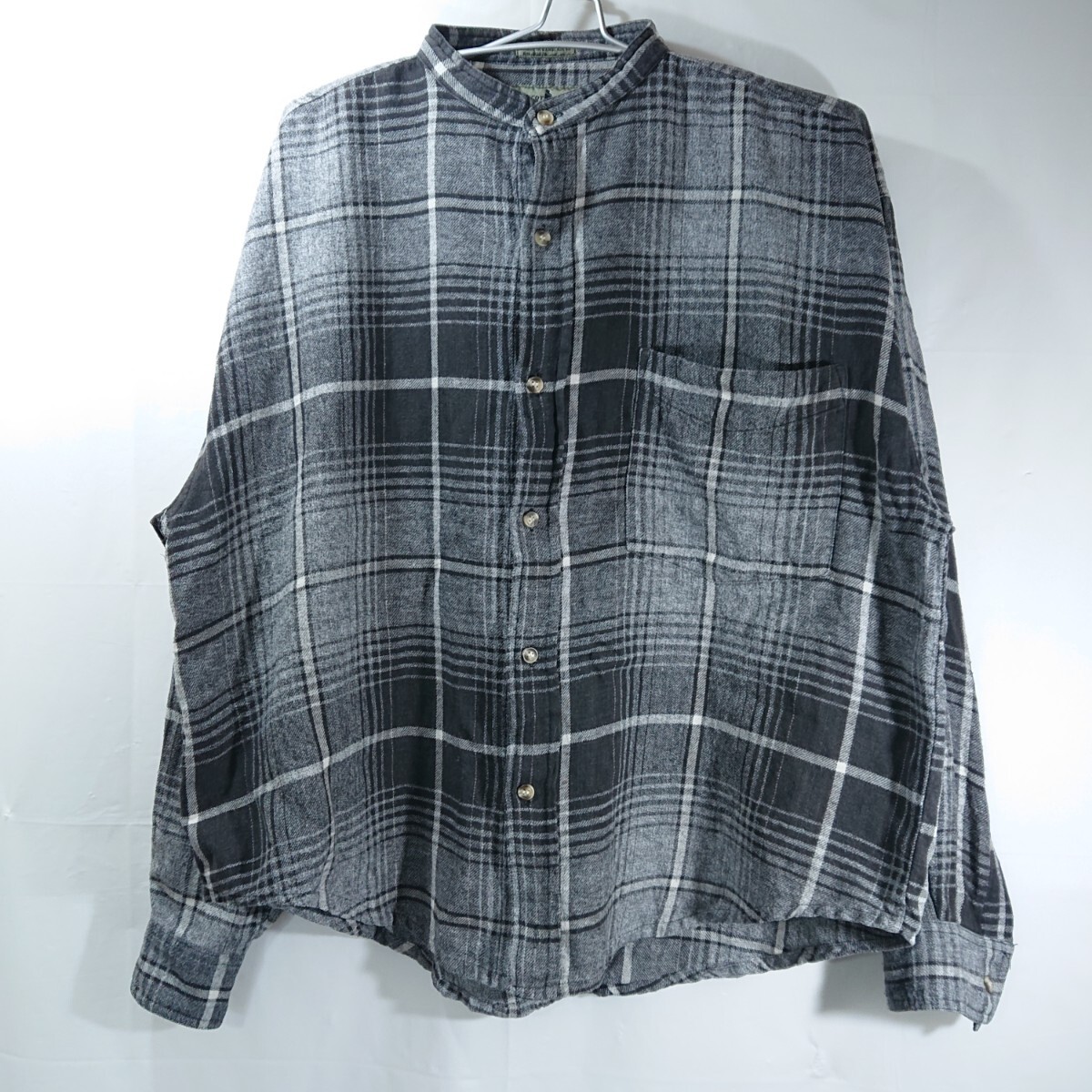 ●商品名:コットンフランネルオンブレチェックシャツ/バンドカラー