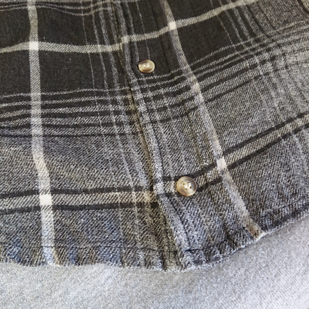 綿100%のフランネル生地。バンド(スタンド)カラー、オンブレチェック、今現在のトレンドにあったシルエット等かなり使い易いアイテムになると思います。お探しの方はこの機会にいかがでしょうか?