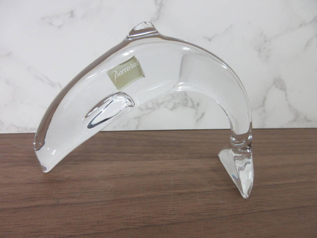 6F2-63[baccara フィギュリン イルカ] 欠け有 クリスタル バカラ 置物 インテリア