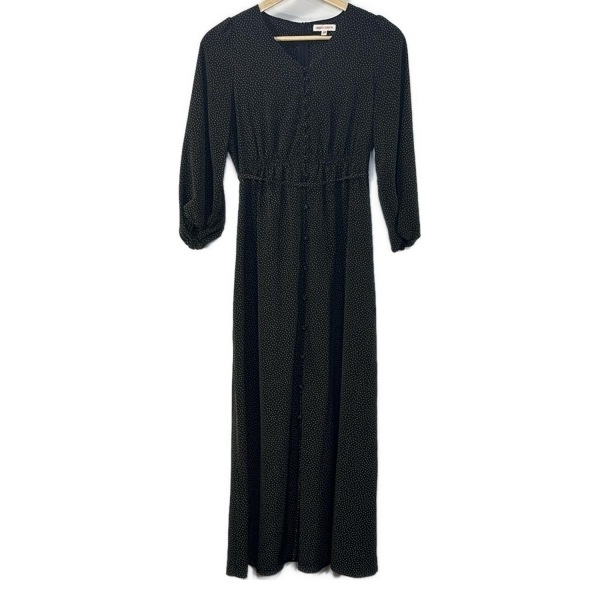 ドレステリア DRESSTERIOR サイズ36 S - 黒×アイボリー レディース Vネック/長袖/ロング/ドット柄/ウエストゴム 美品 ワンピース