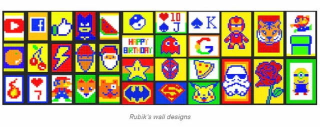 4個のルービック壁を組み合わせると、96個のキューブを配置して美しい絵を描くことができます。