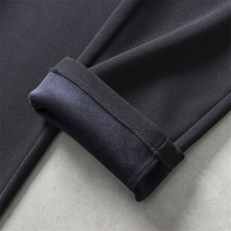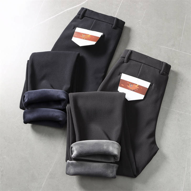 A208-M紺色 スラックス メンズ ノータック ストレートパンツ 裏起毛 防寒 厚手 秋冬 新品 カジュアル ストレッチ ウォームビズ パンツ