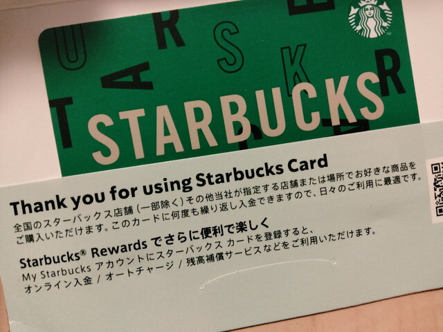 スターバックスコーヒー REWARDS 残金なし カード① です。