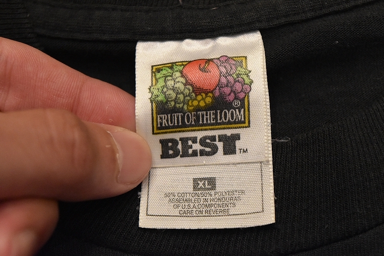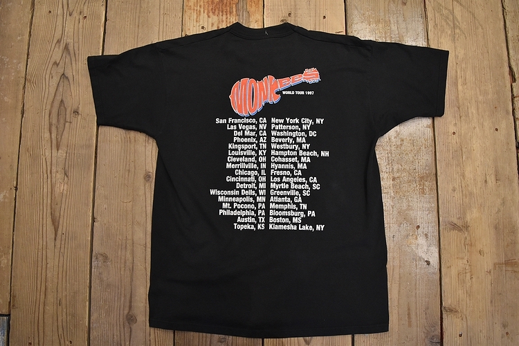 グッドプリント◎90sビンテージFRUIT OF THE LOOMフルーツボディ半袖MONKEESモンキーズ両面プリントTシャツXLブラック黒アメカジ t959