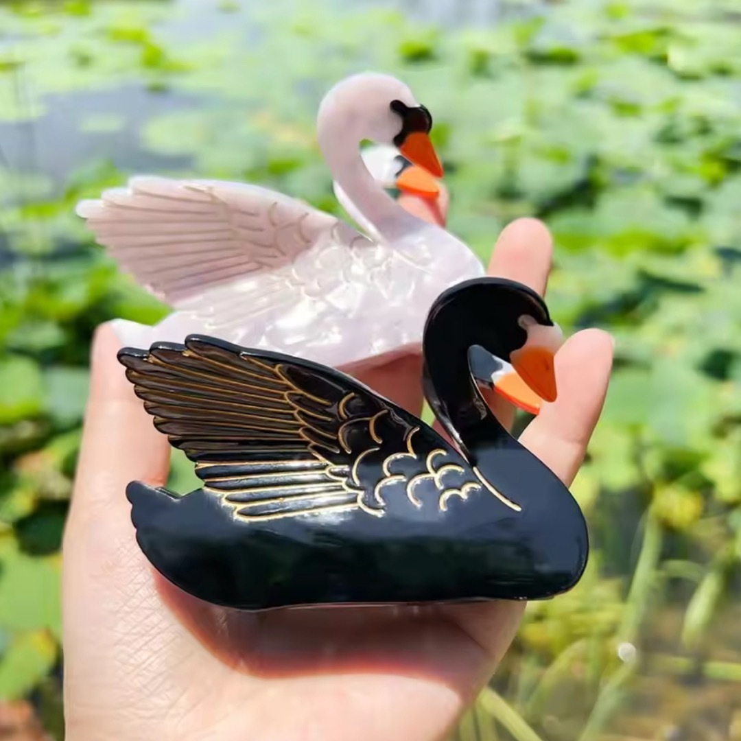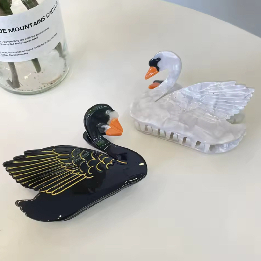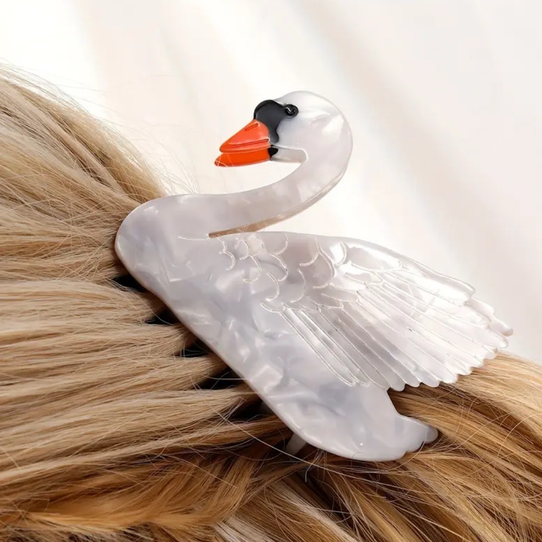 スワン(ホワイト)をモチーフにしたユニークなヘアクリップです♪