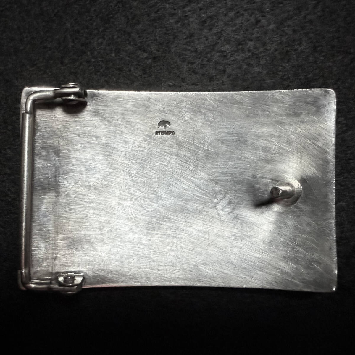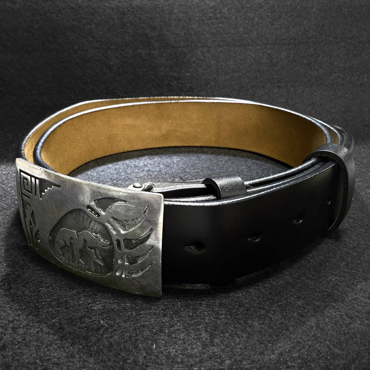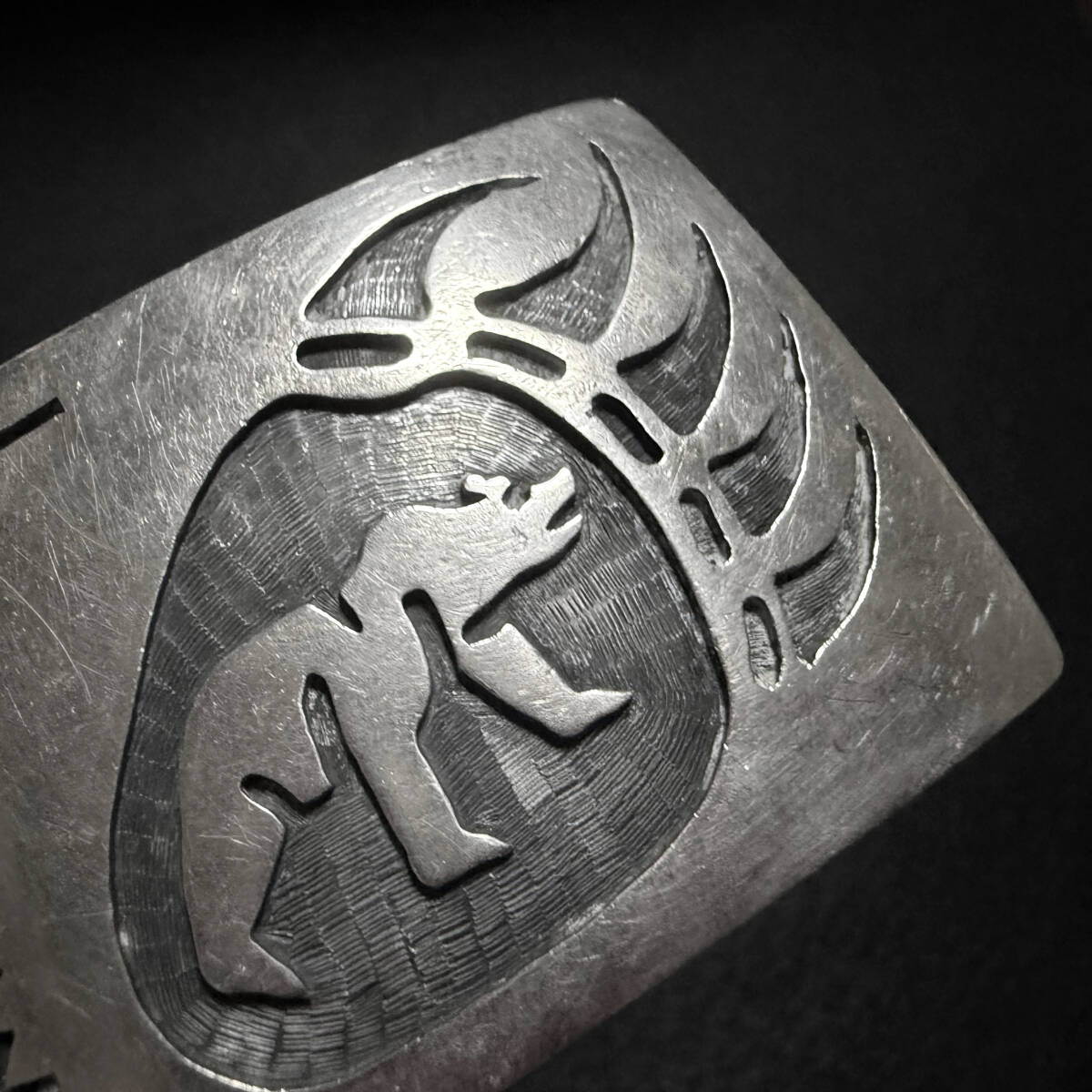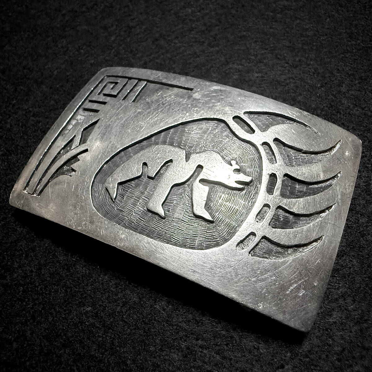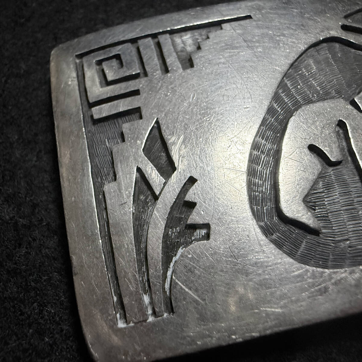 Hopi ホピの大巨匠【故 Lawrence Saufkie】ローレンス スフキー(1934〜2011)作による独特のセンスを感じさせるビンテージのバックルベルトです。