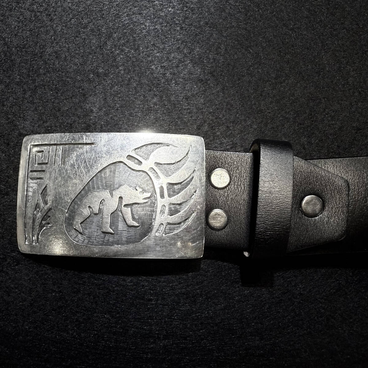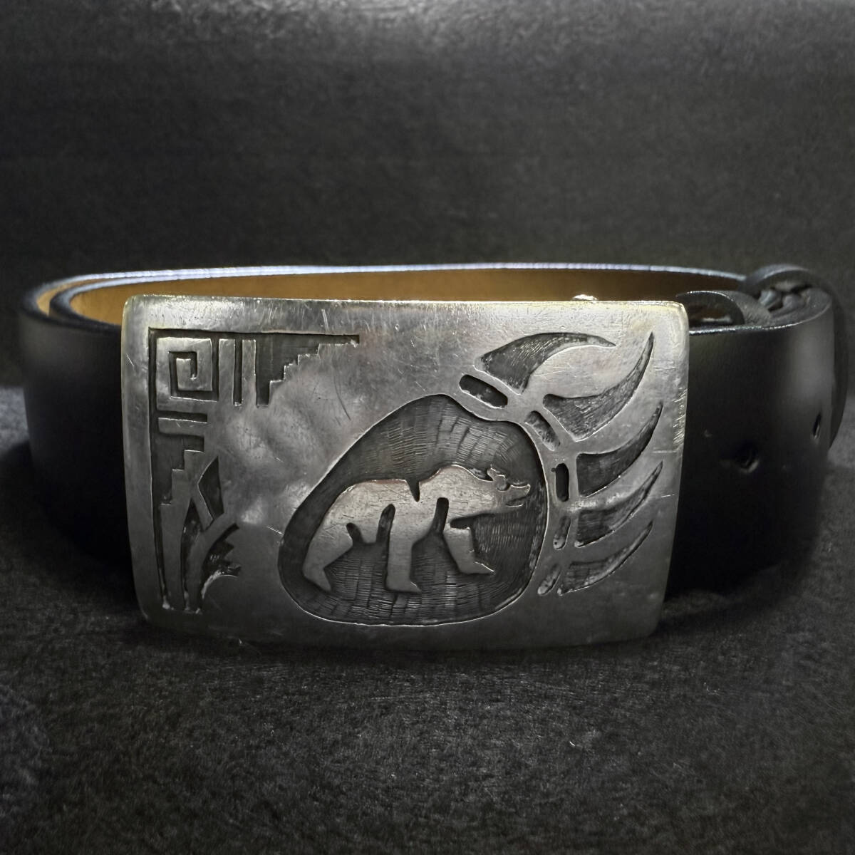 超希少! Hopi 故 Lawrence Saufkie ホピ ローレンス スフキー ビンテージベアバックルベルト インディアンジュエリー Dawahoya Coochwytewa