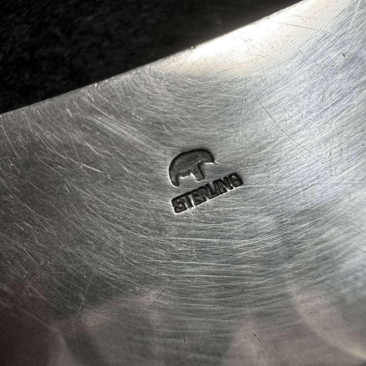 裏側には彼のホールマークが入っており、当時ならではのしっかりとしたオーバーレイ部分の厚みと、ハンマーワークによって曲面となっています。