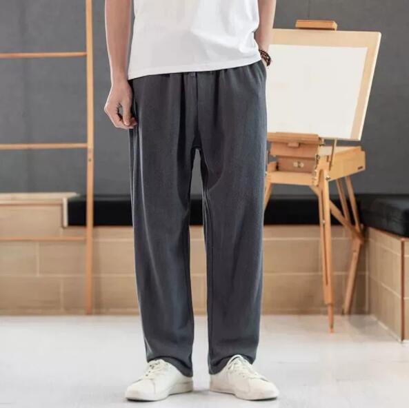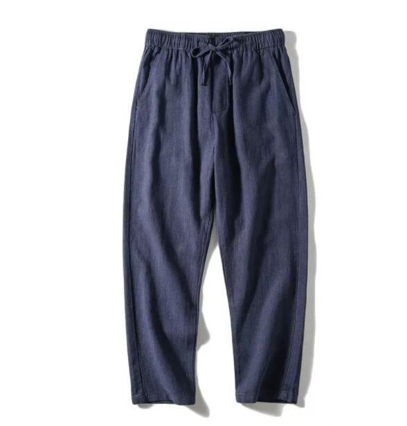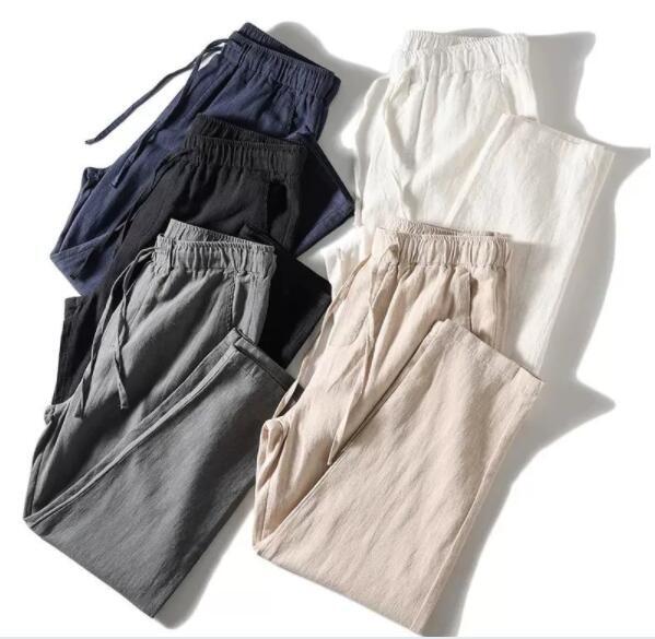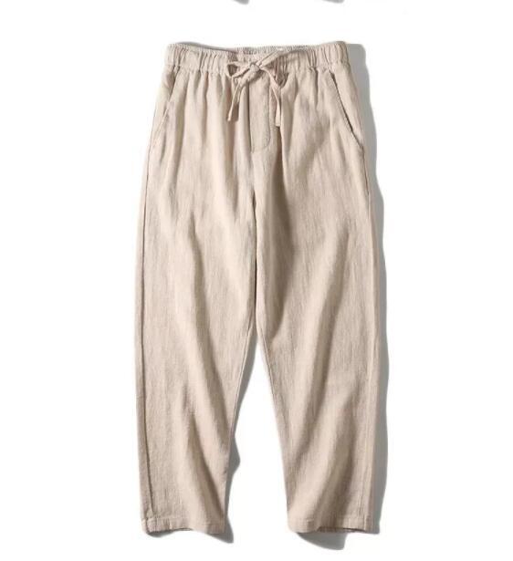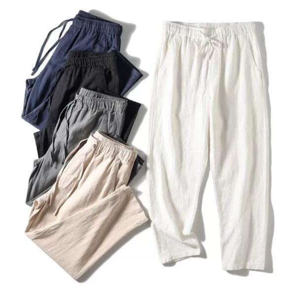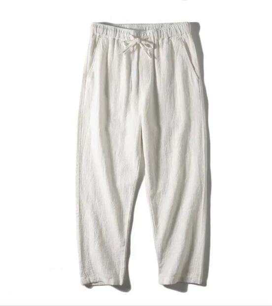 L新品大人気 綿麻混 イージーパンツ メンズ サマー パンツ 薄手 ストレッチ 防シワ 通気 春夏 テーパード ウエストゴム アンクルパンツ/白