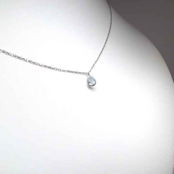 商  品  名K10WG 天然アクアマリンペアシェイプネックレス ■783158-138