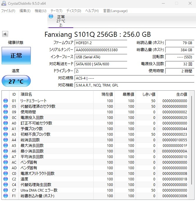 フォーマットが完了し、検査ソフトにて正常判定を確認しております。