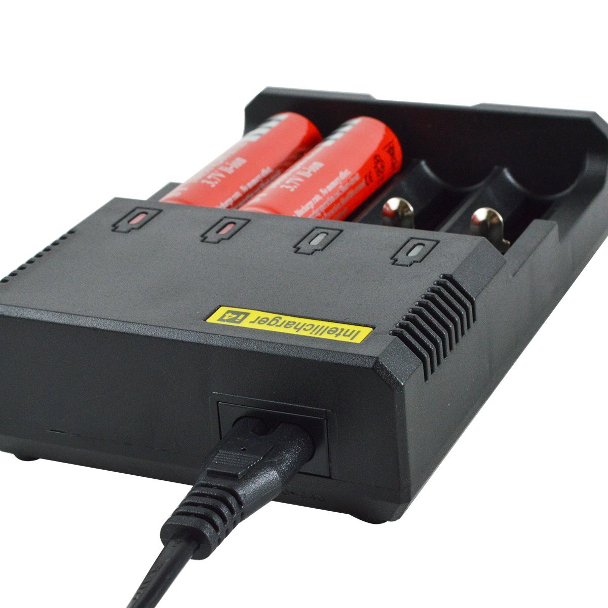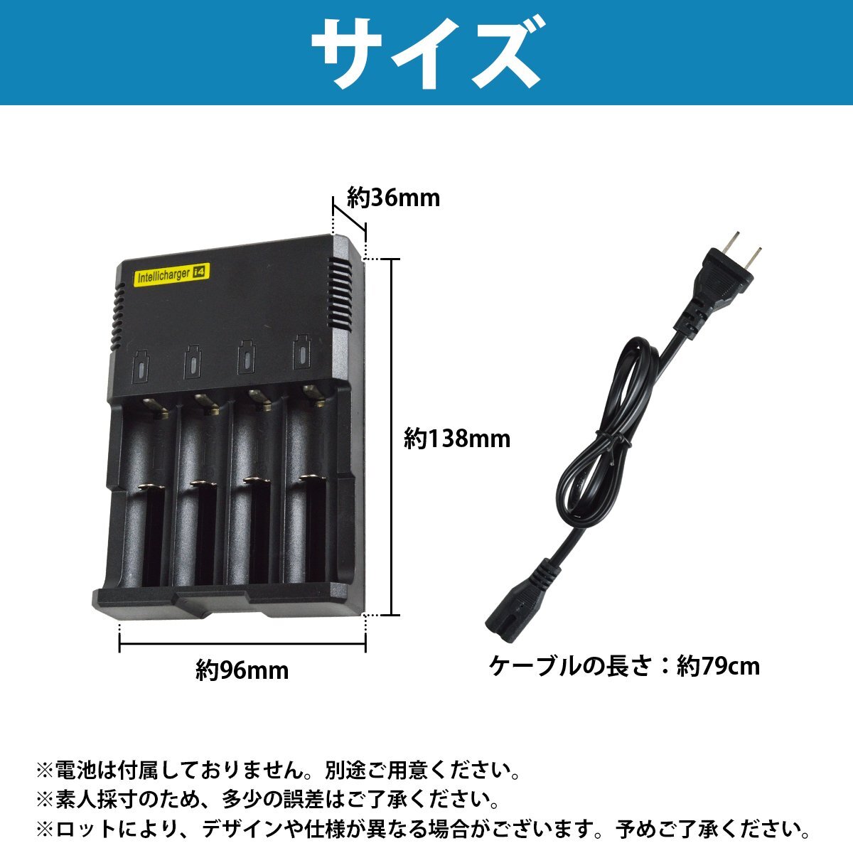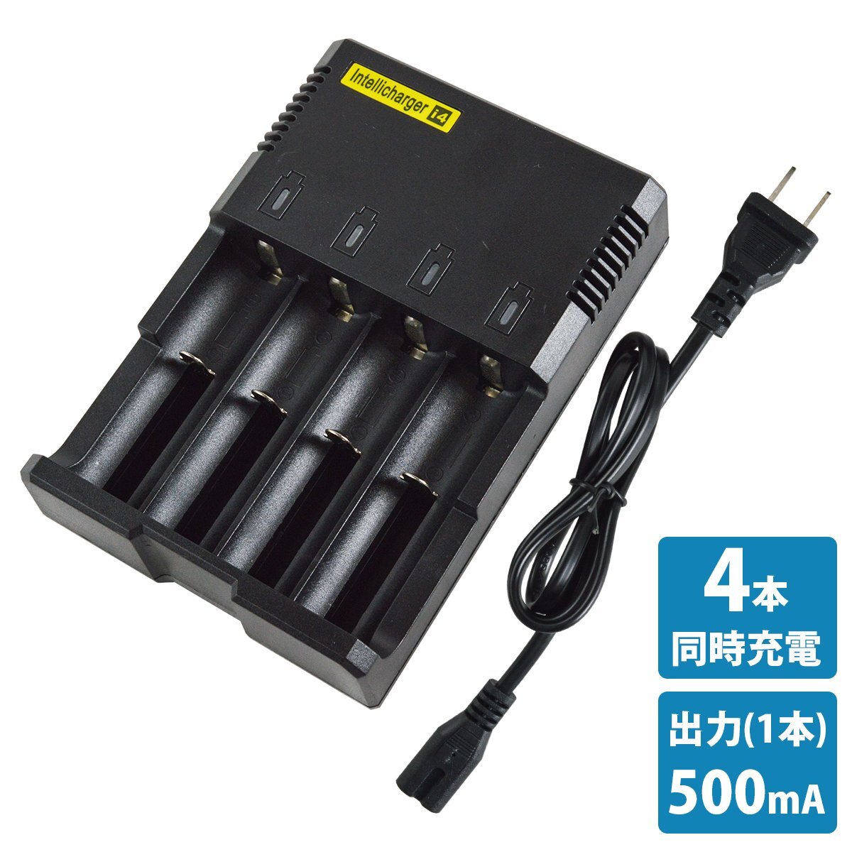 4本 同時充電 リチウムイオン 充電器 500mA×4 AC100V ブラック/黒 充電池 [プロテクト回路付き 18650リチウムイオン電池]