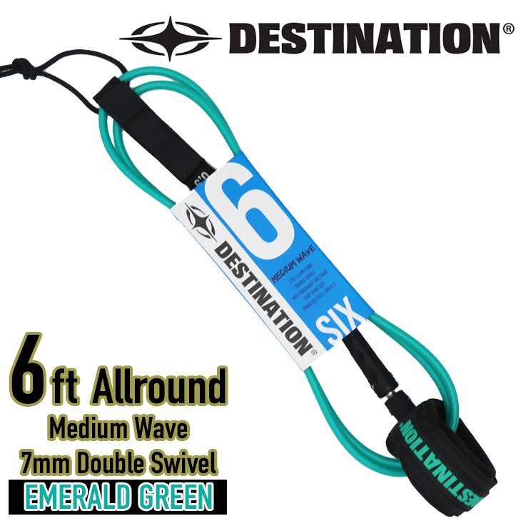■DESTINATION■最新型 6ft Regular [EMERALD GREEN] オールラウンド用 エメラルドグリーン リーシュ Wスゥイベル ディスティネーション